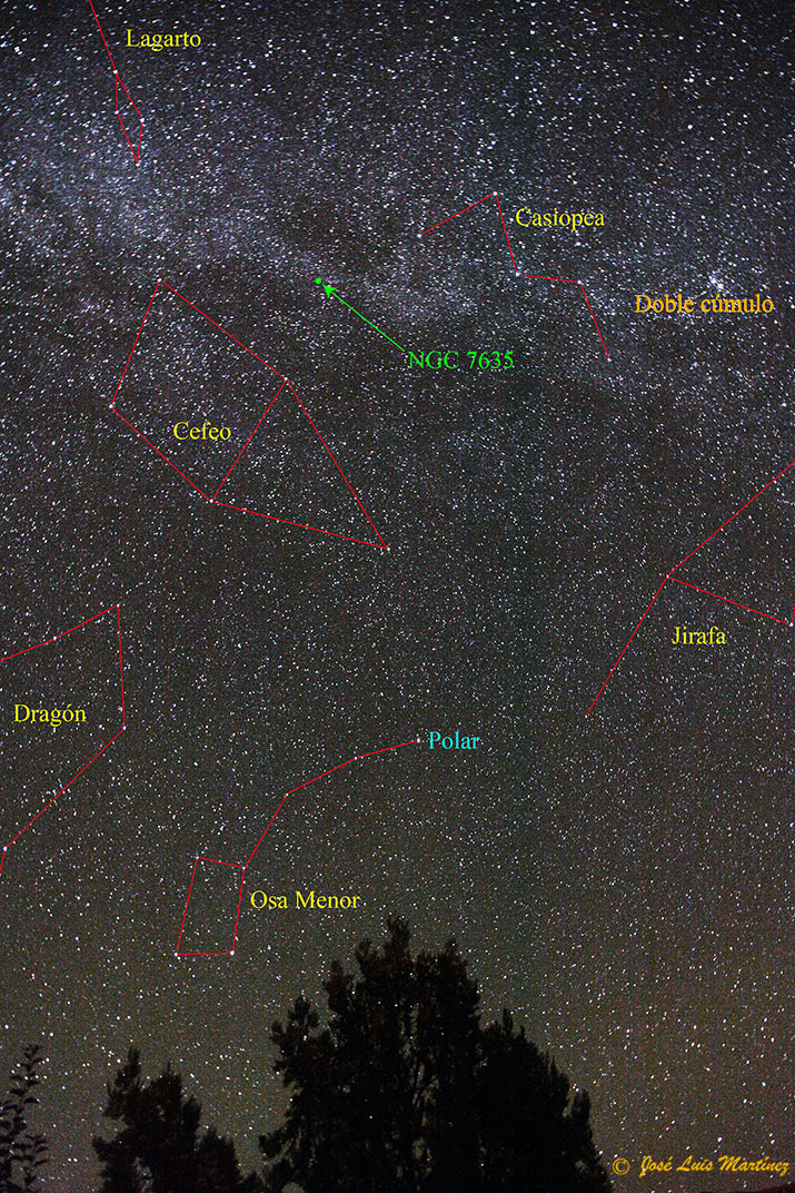 En la zona de Cefeo y Casiopea, mirando hacia el plano galáctico, se encuentran diversos objetos de cielo profundo: nebulosas y cúmulos abiertos. Algunos de ellos los encontramos en el mismo campo, como es el caso de NGC 7635, una nebulosa de emisión conocida como la nebulosa de la Burbuja, de la cual tratamos en este artículo, y el cúmulo abierto M52. Ambos objetos se encuentran en el cielo en la constelación de Casiopea.