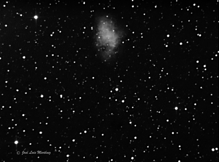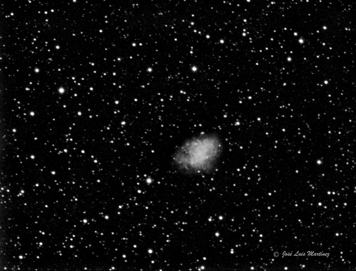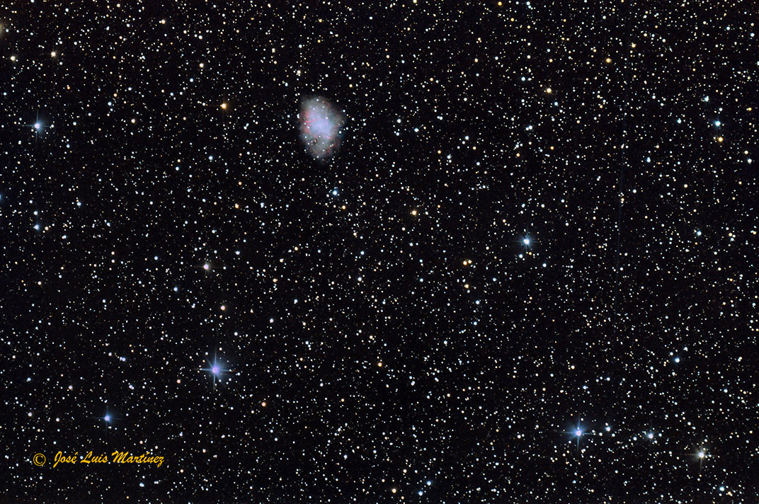 En la fotografía siguiente, hecha el 18 de noviembre de 2017 desde Querol con un telescopio reflector Skywatcher 200/1000 y una cámara Canon EOS 550D, puede verse los restos de aquella supernova vista en el año 1054, el remanente de aquella explosión, la nebulosa del Cangrejo.