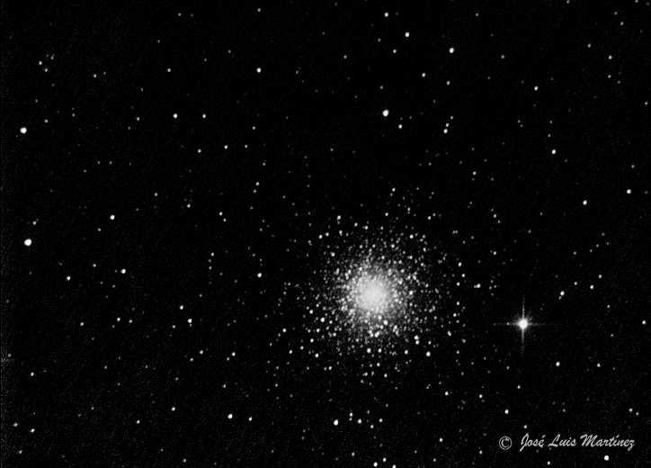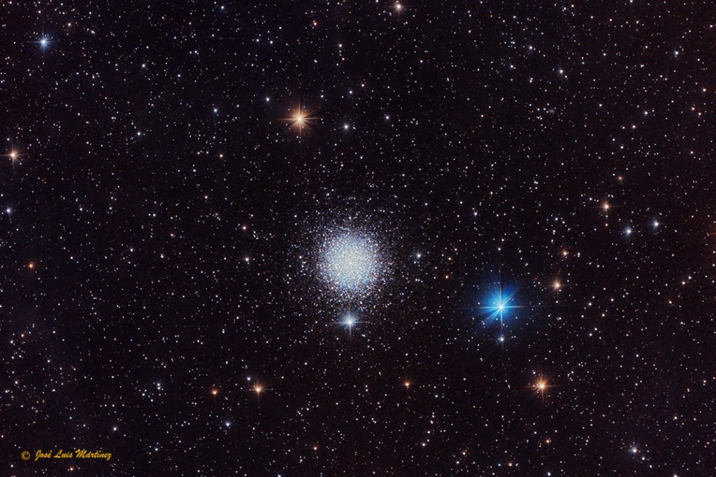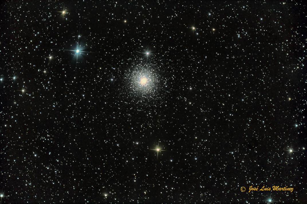 La siguiente fotografía, hecha desde Querol el día 16 de diciembre de 2017 con un telescopio reflector Skywatcher 200/1000 y una cámara Canon EOS 550D, es también de este cúmulo globular.
