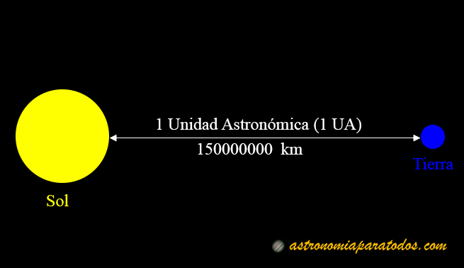 La Unidad Astronómica (UA o AU), es la distancia media entre la Tierra y el Sol y equivale aproximadamente a unos 150 millones de kilómetros; es pues, el radio medio de la órbita de la Tierra en torno al Sol.
