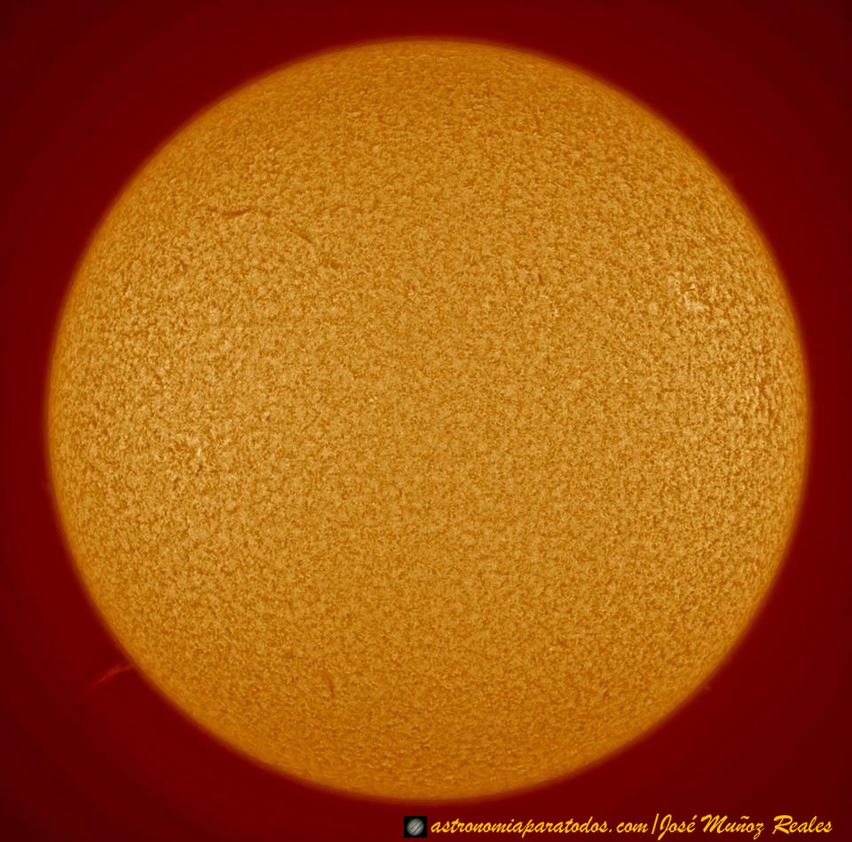 En esta otra fotografía, realizada el 27 de marzo de 2015, podemos observar, además del granulado de la superficie, protuberancias, filamentos, fáculas y manchas.