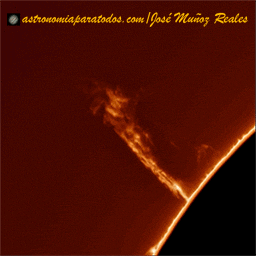 Para cerrar este artículo, tres animaciones de protuberancias solares hechas a partir de tres vídeos realizados el 19 de julio de 2012, el 4 de septiembre de 2012 y el 14 de junio de 2015. El central es una protuberancia solar en bucle.
