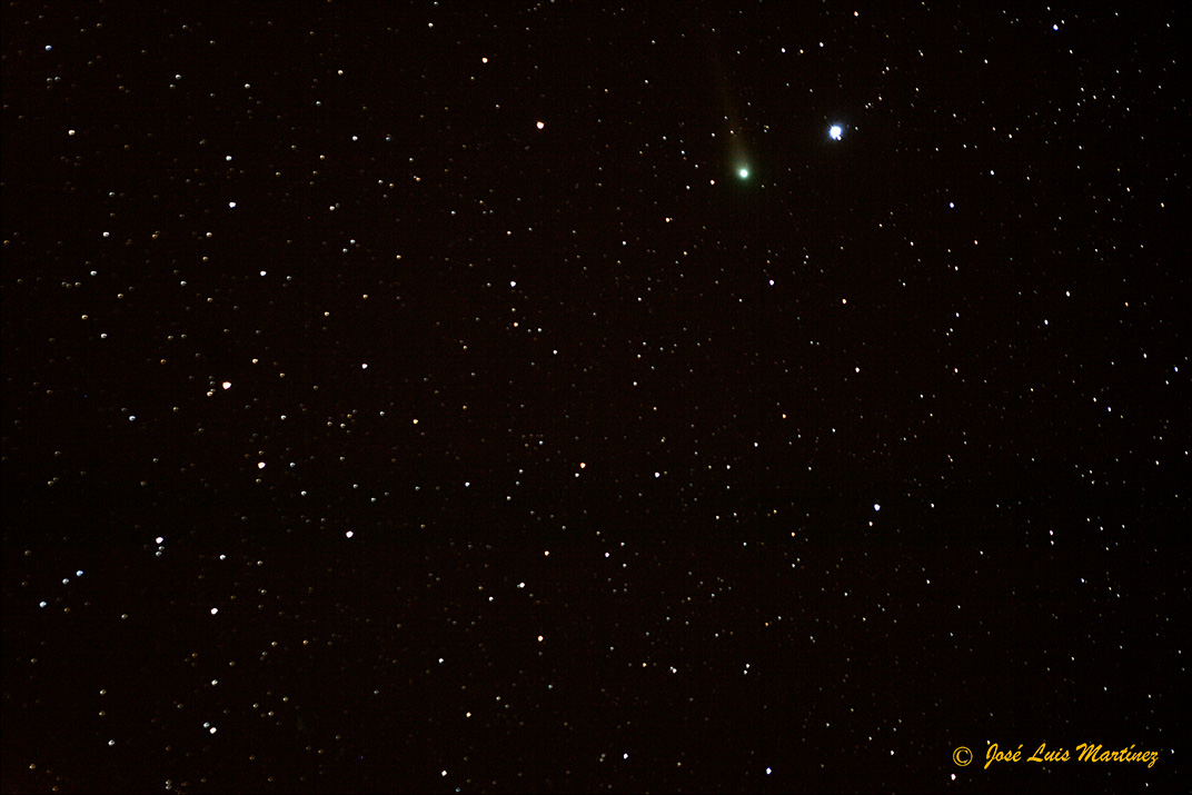 La siguiente fotografía, hecha desde Pujalt, en la Anoia (Barcelona), el 27 de febrero de 2009 con una cámara Canon EOS 30D y un objetivo Sigma 70-300, es del cometa Lulin, oficialmente el cometa C/2007 N3, a su paso por Leo (la estrella de la derecha del cometa es Regulus, la estrella más brillante de la constelación de Leo).