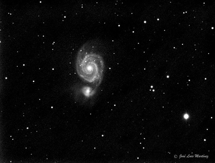 En la constelación de Canes Venatici (Perros de caza), muy cerquita de la Osa Mayor, se encuentra una de las galaxias espirales más bellas, el objeto Messier M51, conocido como la galaxia del Remolino (o del Torbellino).