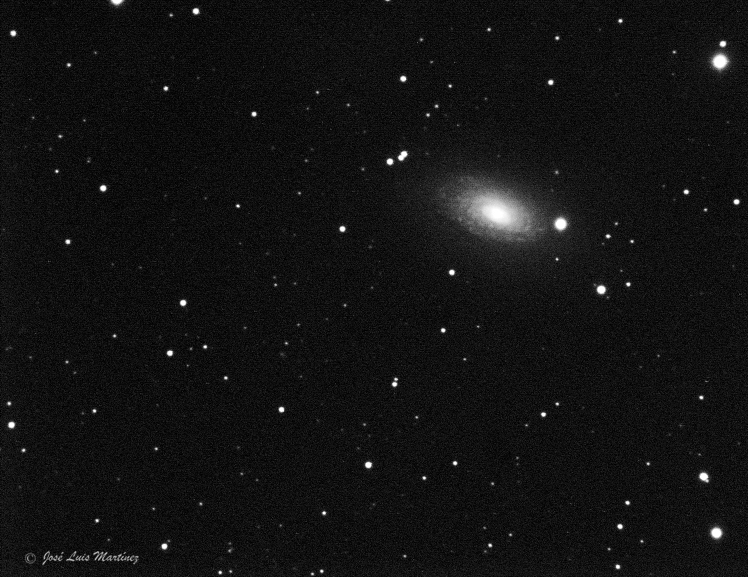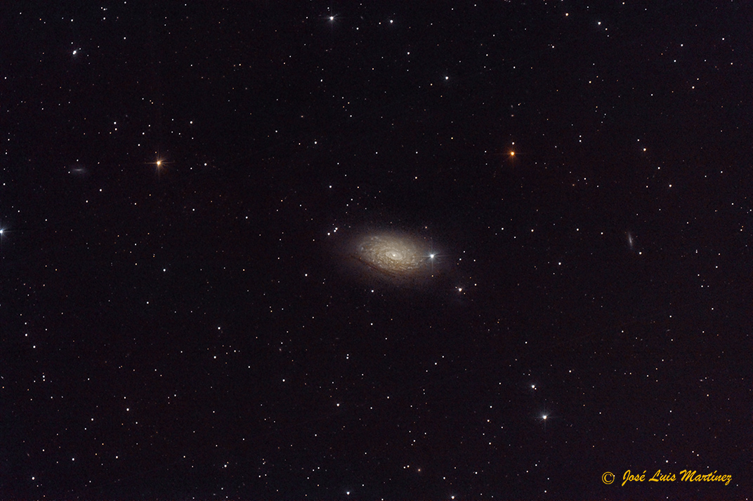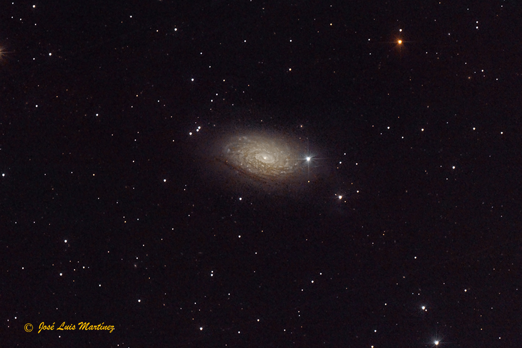 En la siguiente fotografía, realizada desde Querol el 12 de julio de 2018 con un telescopio reflector Skywatcher 200/1000 y una cámara Canon EOS 550D, puede apreciarse esta estructura especial de galaxia espiral.