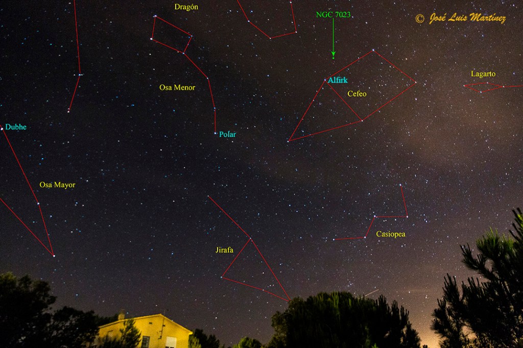 En la constelación de Cefeo, entre la Osa Menor y Casiopea, se encuentra la hermosa nebulosa de reflexión NGC 7023, incluida también en el catálogo Caldwell como C4 y conocida como la nebulosa Iris, denominada así porque recuerda a una flor de iris.