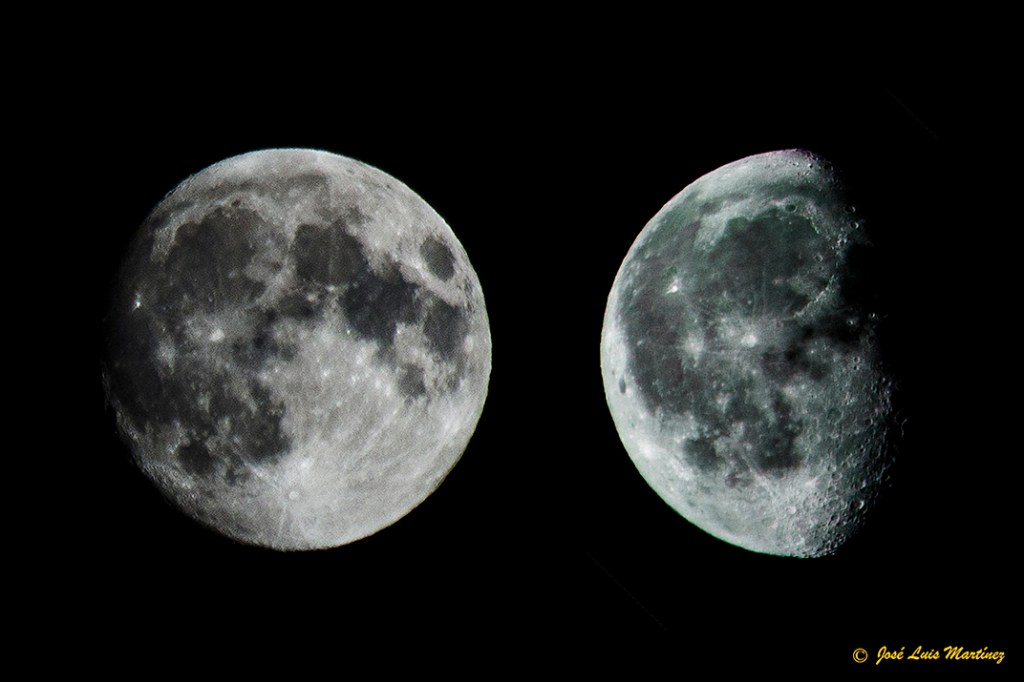 Dos fotos de la Luna en dos fases diferentes, realizadas ambas desde Querol sin telescopio, con una cámara Canon EOS 70D y un objetivo Canon 70-300.