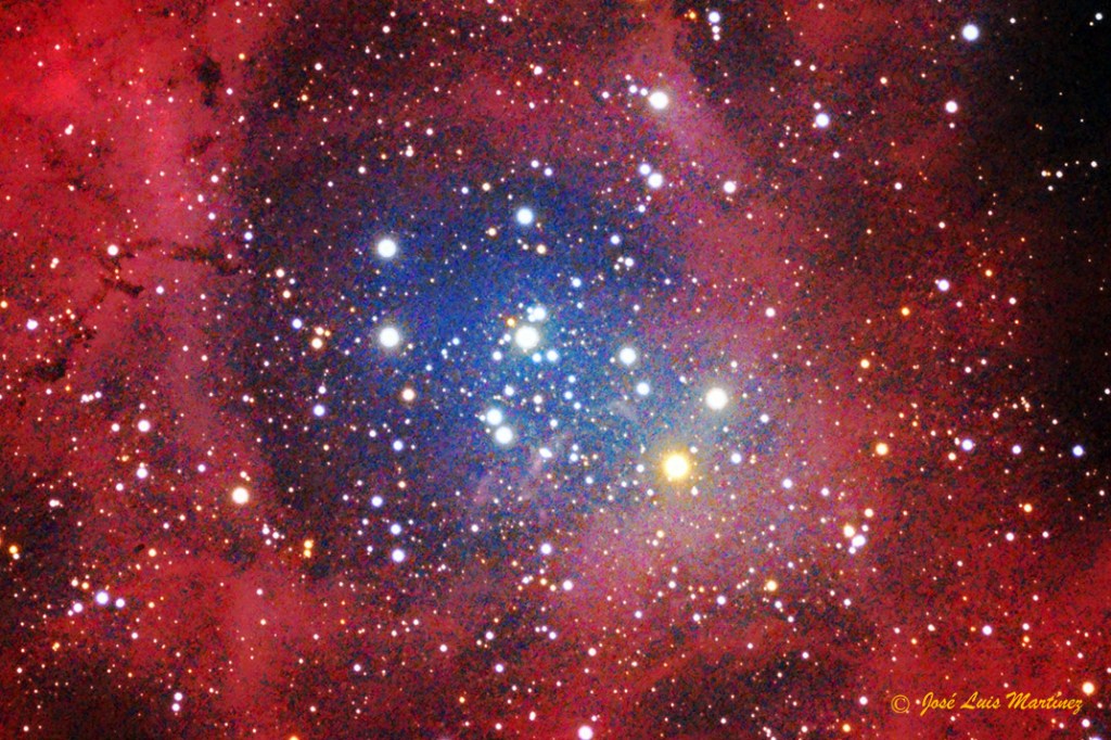 La imagen siguiente es un recorte de la anterior, donde he centrado el cúmulo abierto NGC 2224.