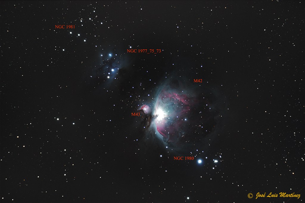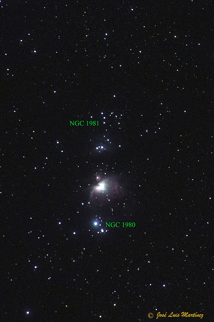 Cuando miramos la espada de Orión con un telescopio, nos deja tan asombrados la Gran nebulosa, M42, y su compañera la nebulosa de Mairan, M43 (de hecho, la Gran nebulosa la forman M42 y M43), que se nos pasan por alto otros objetos, si bien no tan espectaculares, pero igualmente hermosos e interesantes. Es el caso de la nebulosa del Hombre corriendo (NGC 1977, 1975 y 1973) y de los cúmulos abiertos NGC 1980 y 1981, de los cuales tratamos en este artículo.