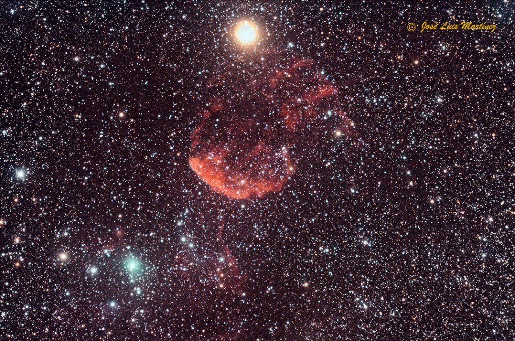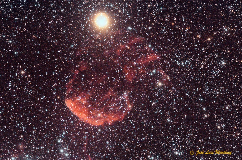 La imagen siguiente es un recorte de la anterior, en la que he centrado la nebulosa Medusa y la estrella Propus.