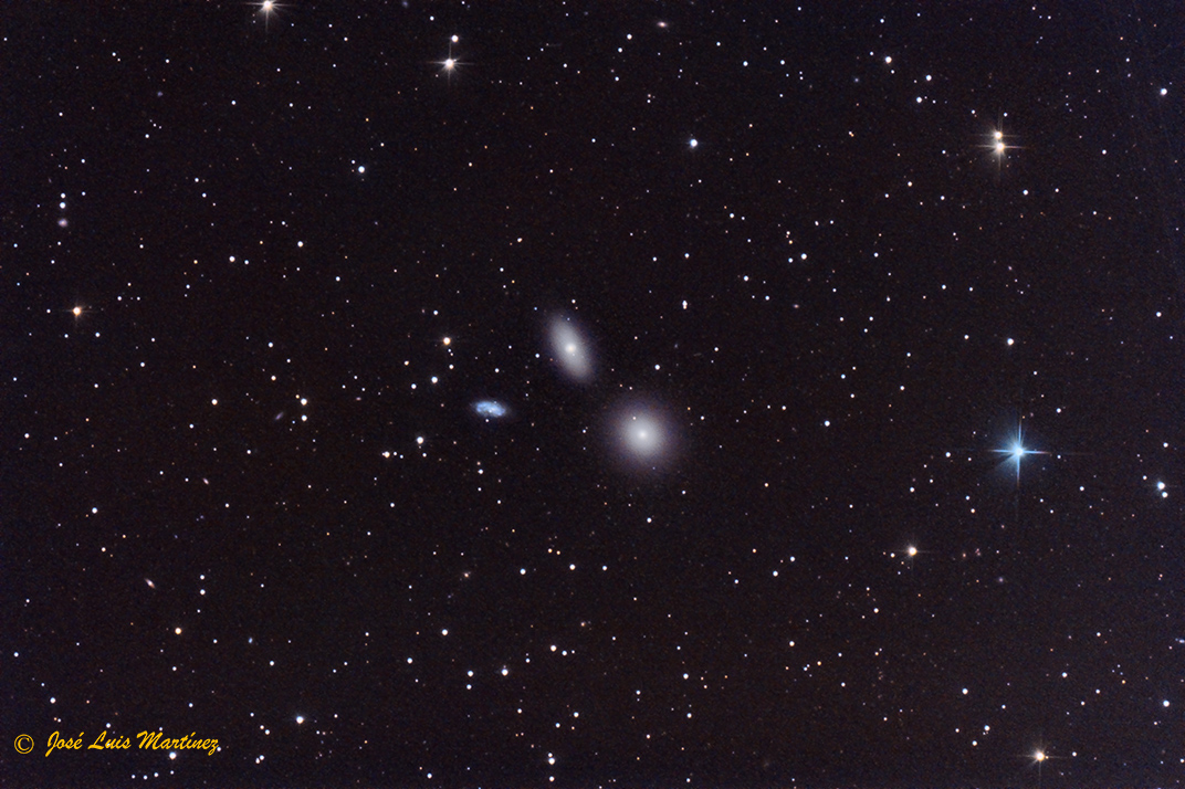 La imagen siguiente es un recorte de la anterior, y en ella podemos ver con más detalle estas tres galaxias.