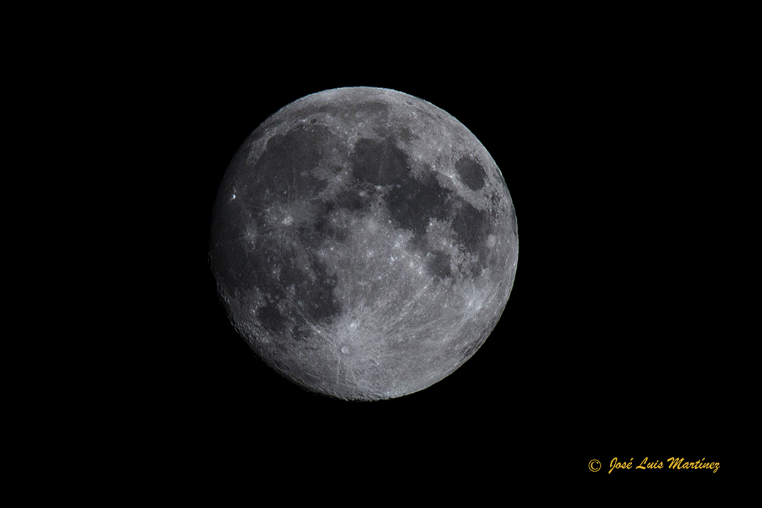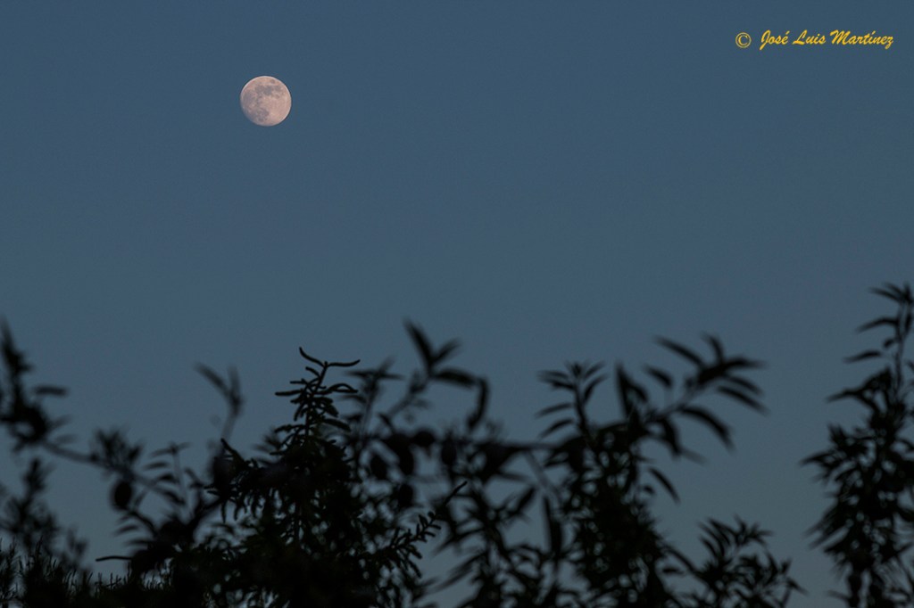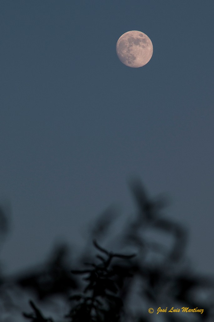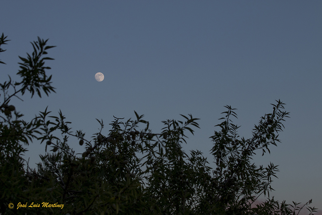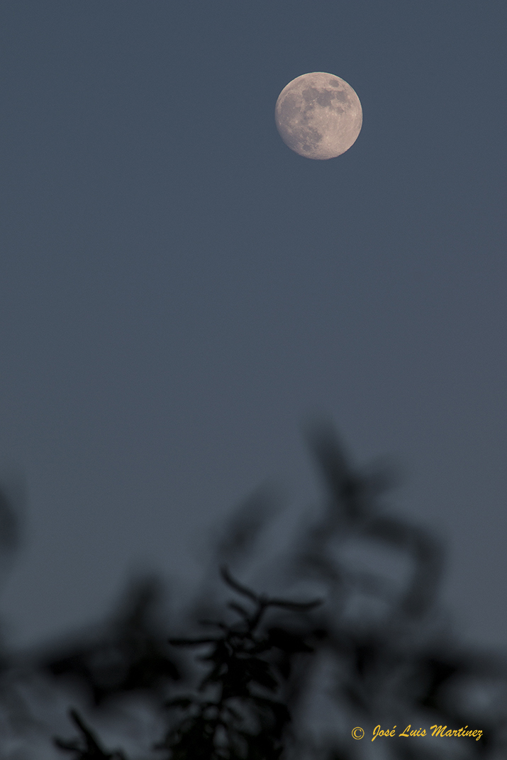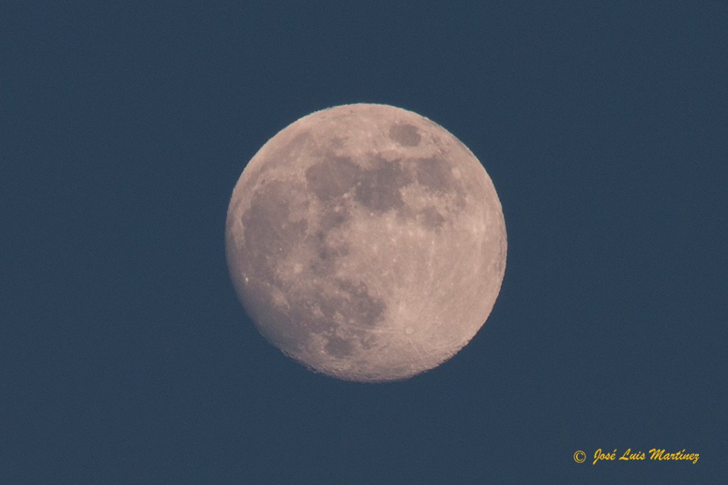 El cielo estaba raso, sin ninguna nube, y la Luna estaba preciosa en esta faceta de casi llena. Pero ello también produce mucha luz, por lo que no es el mejor momento para ver o fotografiar el cielo profundo.