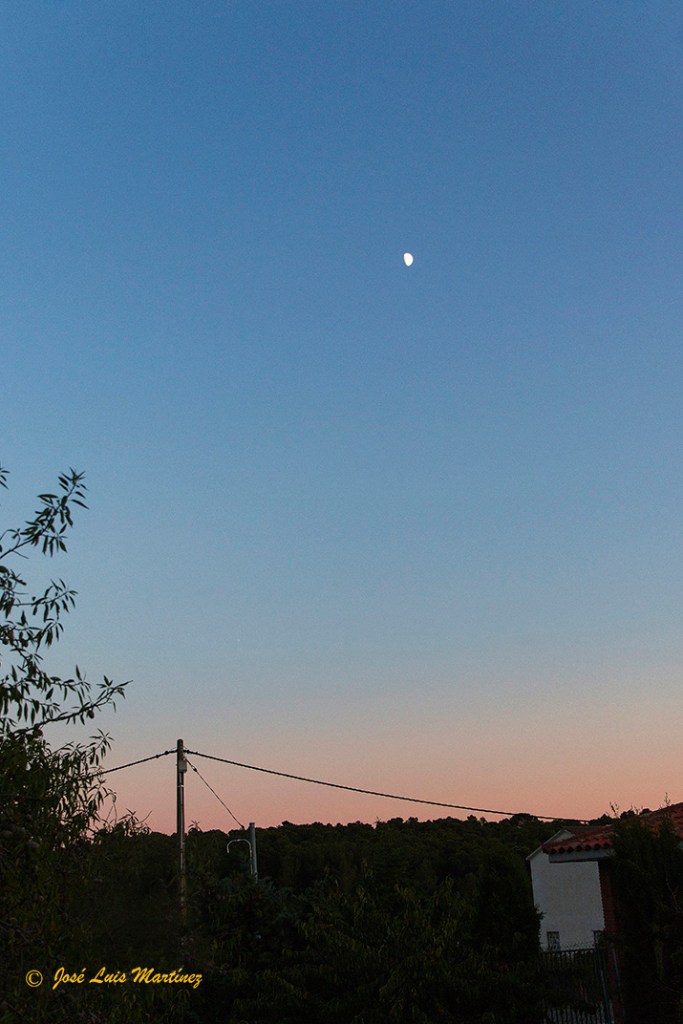 Como siempre que está en fase creciente, la Luna salió por la tarde, lo cual me permitió hacerle la siguiente fotografía de la Luna de día.