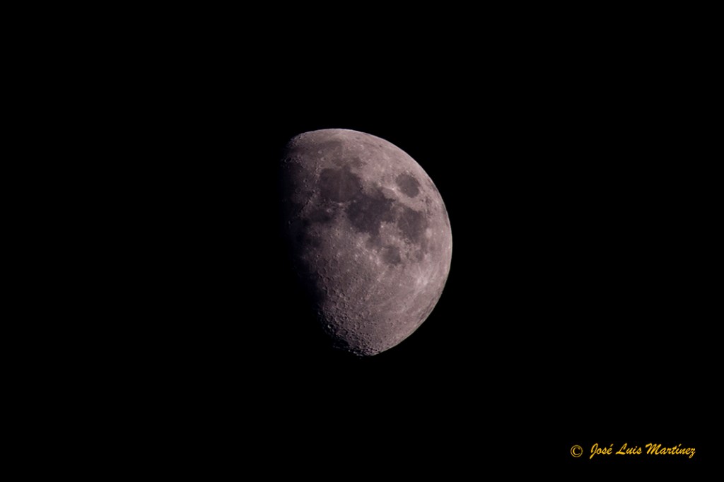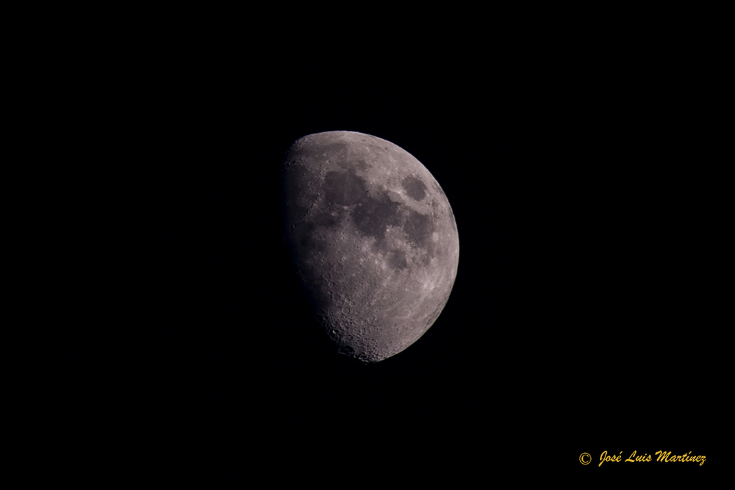Con 300 mm de focal, le hice esta otra fotografía a la Luna gibosa creciente.