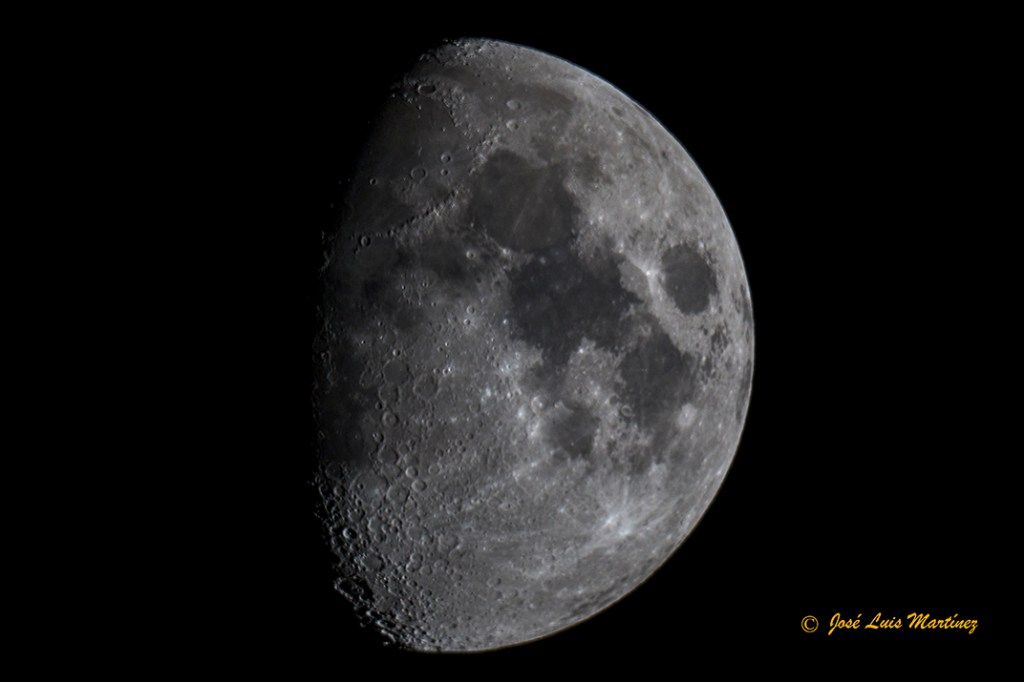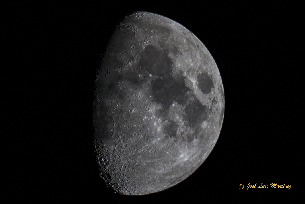 Finalmente monté el telescopio, el reflector Skywatcher 200/1000, para observar y fotografiar la Luna, aunque también estuve observando a Júpiter y Saturno. Estos tres astros del Sistema Solar, por mucho que los observes nunca te cansas. Bien, la fotografía en cuestión es la siguiente.