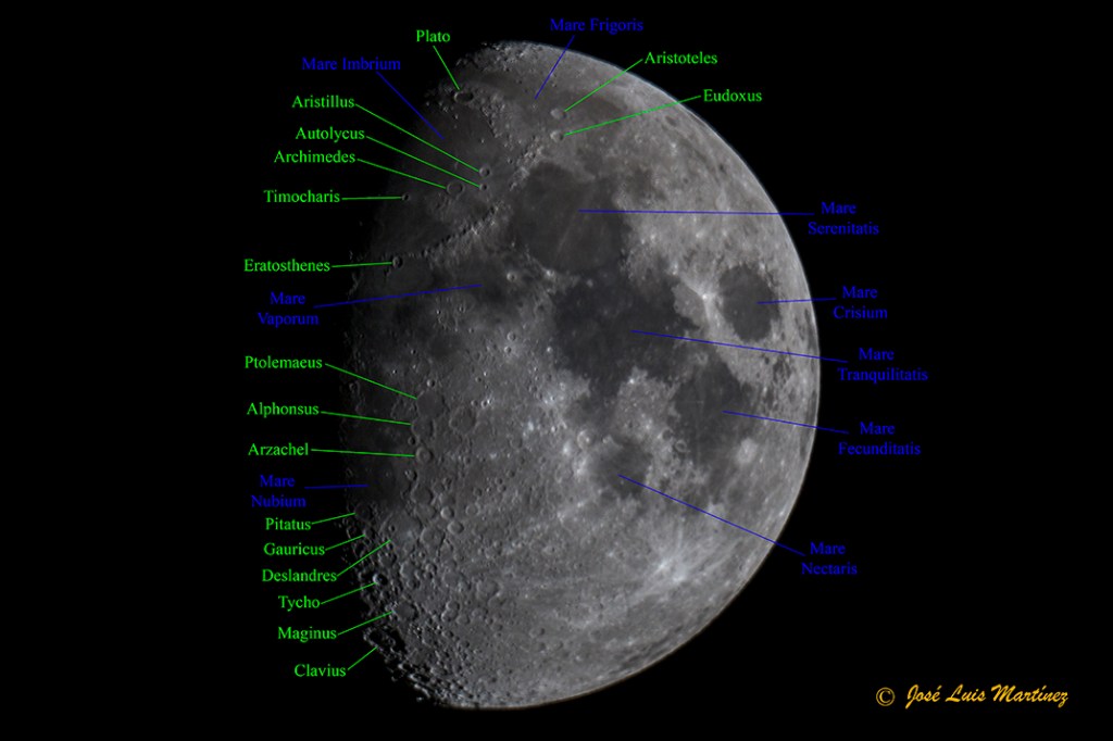 A la cual le he puesto los nombres de los mares y cráteres más importantes que se ven.