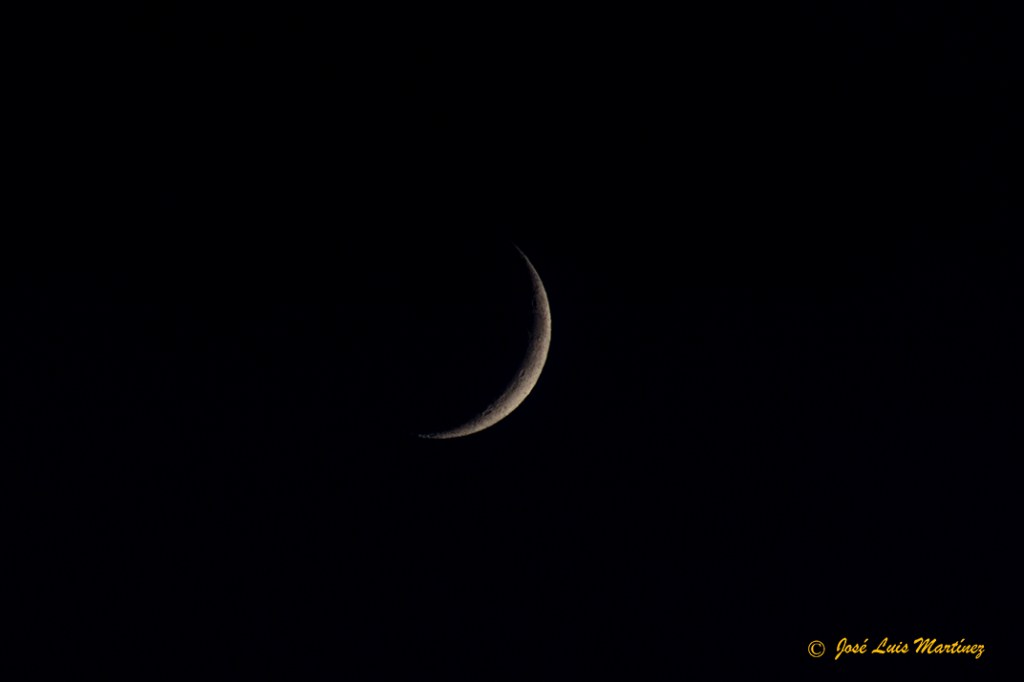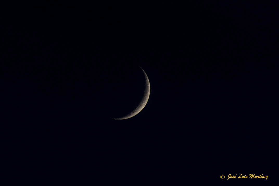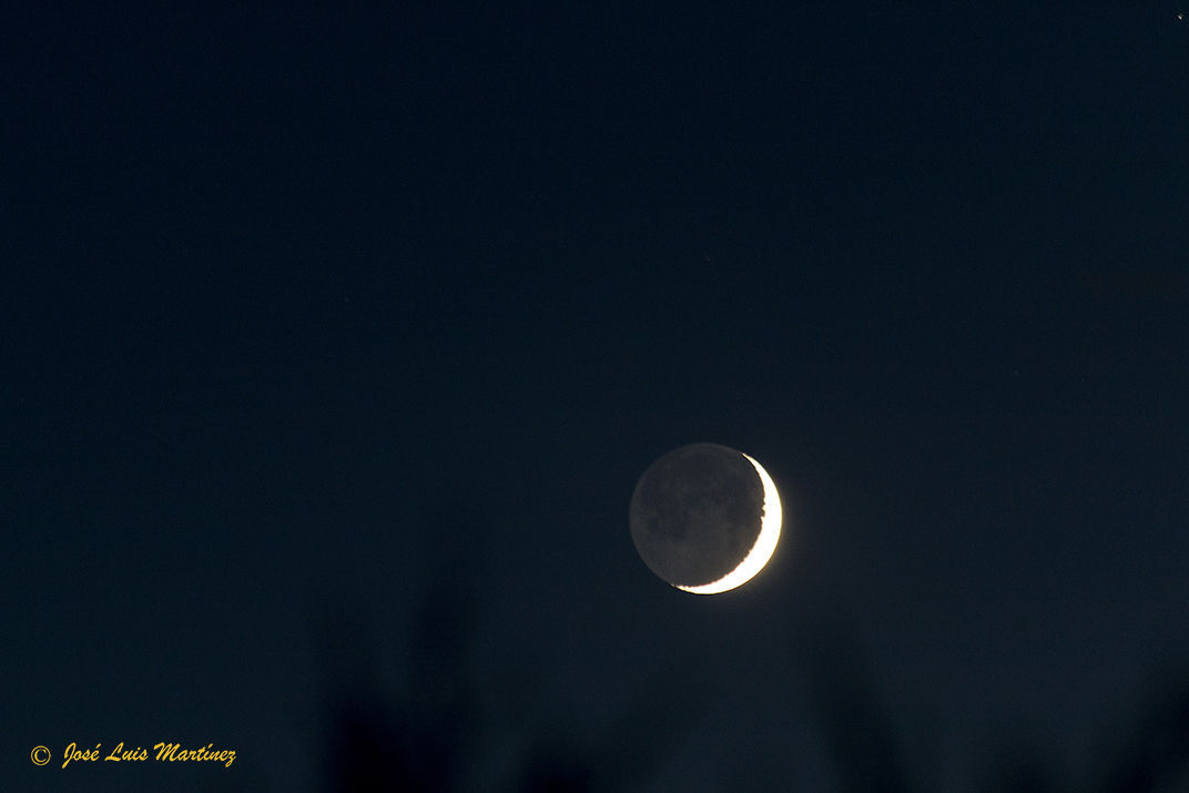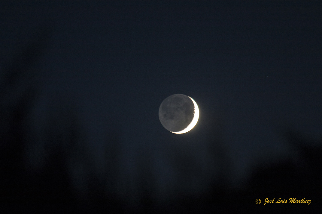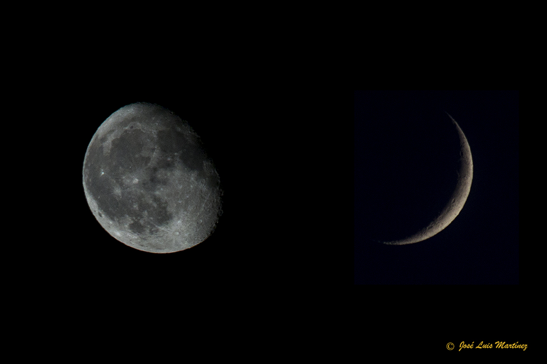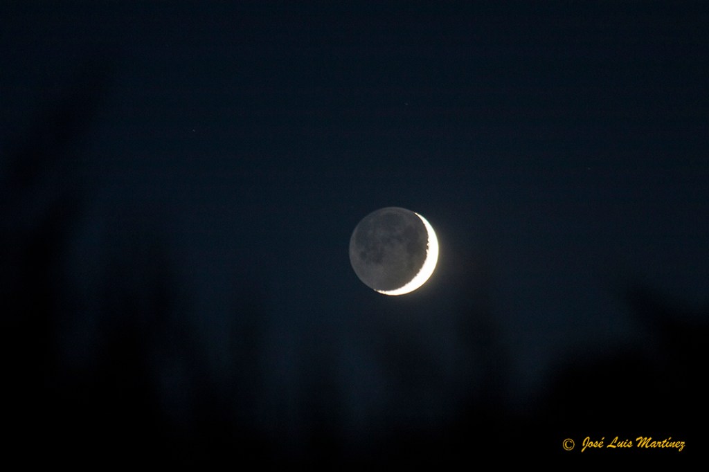 Después hice un par de fotos con más tiempo de exposición, para que se viera la luz cenicienta de nuestro satélite, ideal con la Luna en esta fase tan joven.