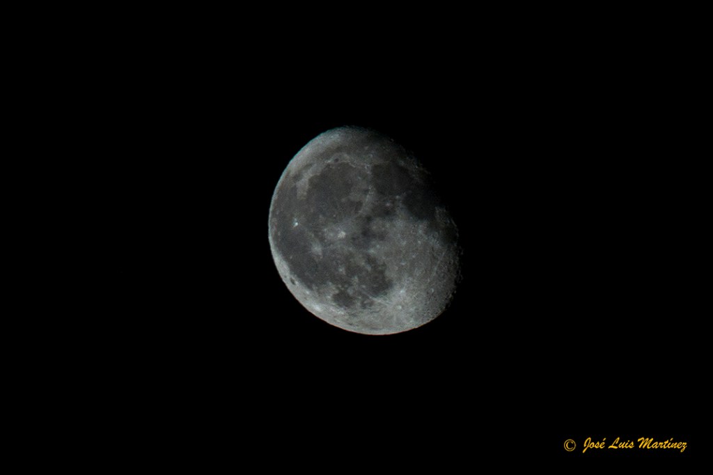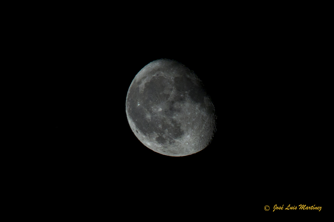Me pilló de vacaciones en Granada, por lo que no tenía telescopio para fotografiarla, pero sí cámara y teleobjetivo. Le puse la máxima focal del mismo (300 mm) y le hice la siguiente fotografía.