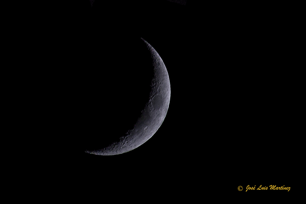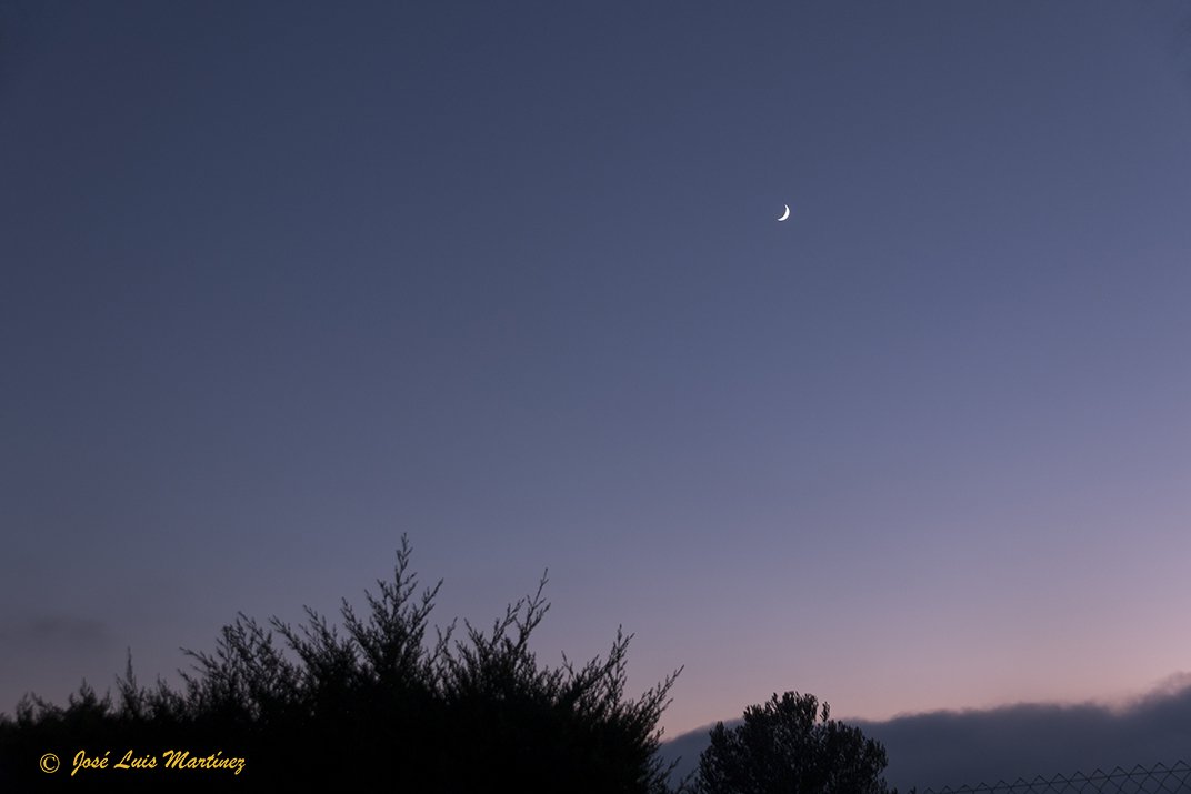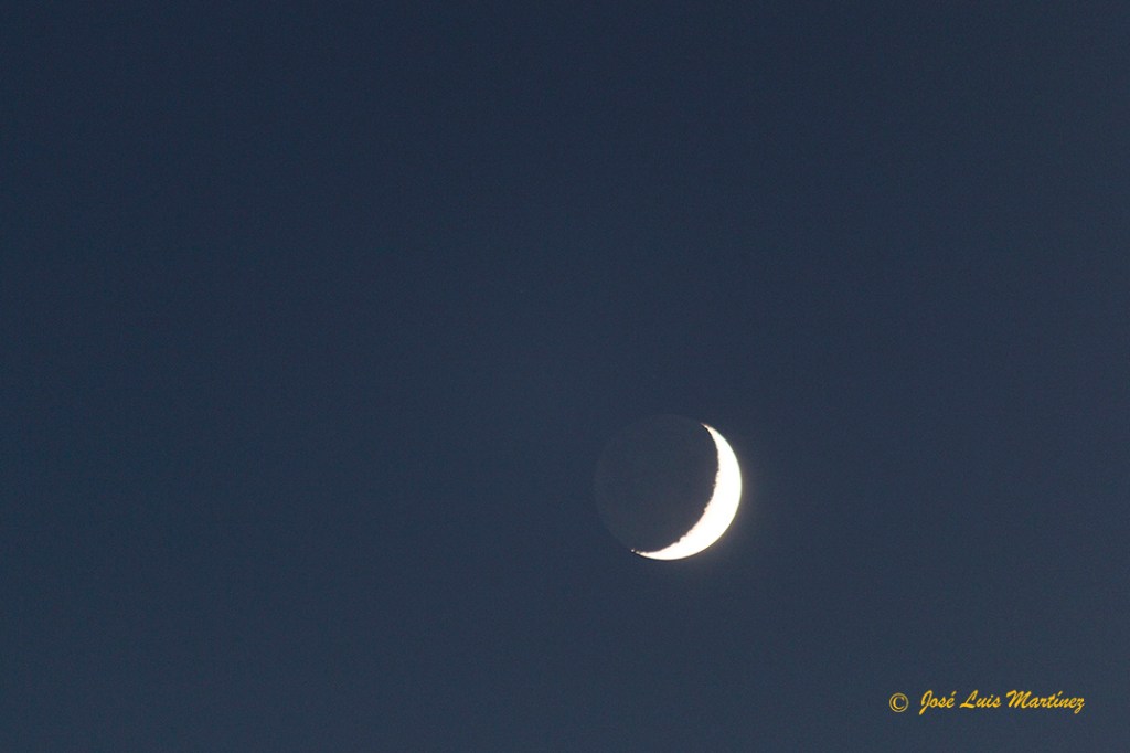 A partir de aquí, las nubes cubrieron el cielo bastante deprisa, pero en un pequeño claro que había en la zona de la Luna, pude hacer dos fotografías más con el 70-300. En esta primera se ve un poco la luz cenicienta de la Luna.