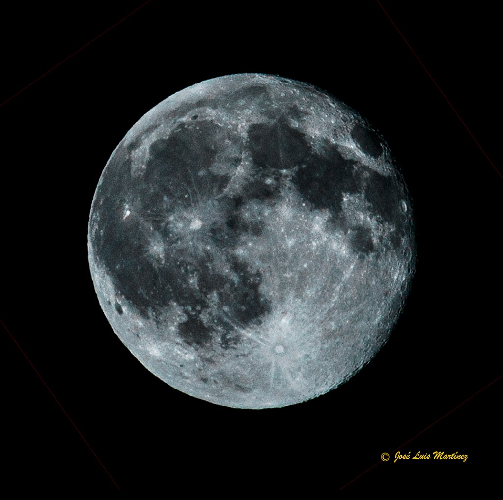 El sábado 11 de enero de 2020, la Luna estaba gibosa menguante, con una edad de 16 días (un día después de llena) y con un 99% de iluminación. Este hecho, el que estuviera prácticamente en fase de Luna llena, hacía que no fuera el mejor momento para su observación y fotografía, pero quería probar una cámara de nueva adquisición para astrofotografía planetaria, una ZWO ASI 224 MC, así que aproveché que me encontraba en Querol para montar el telescopio y fotografiar la Luna.