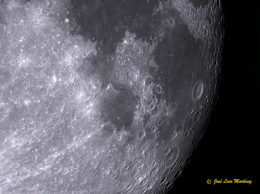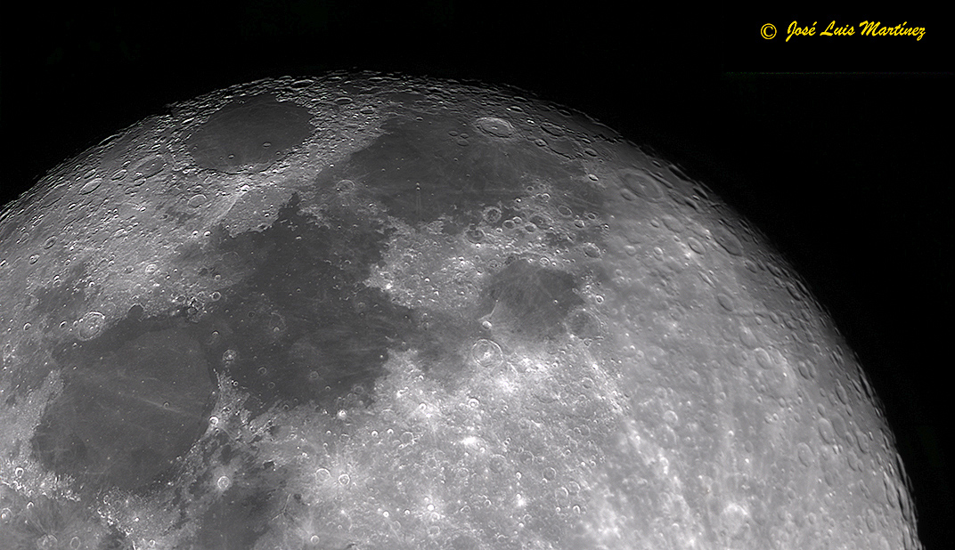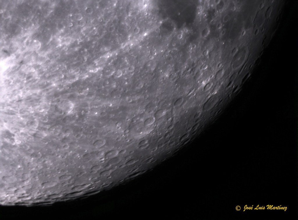 Una vez realizada esta fotografía, monté el telescopio (el reflector Skywatcher 200/1000) y me dispuse a hacer fotos del terminador con la ASI 224 MC. En concreto hice tres, una del norte, otra del centro y otra del sur. Esta primera es la de la zona norte del terminador.