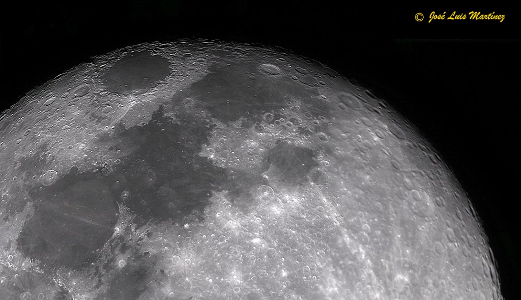 Al estar prácticamente llena, la iluminación es tan intensa que los cráteres son prácticamente inapreciables. No obstante, los tres representativos de la Luna, Plato en el norte, Copernicus en el centro y Tycho en el sur, se ven incluso en Luna llena; en estos dos últimos podemos observar perfectamente sus sistemas de rayos, los cuales son visibles precisamente cuando la Luna está llena o casi llena.