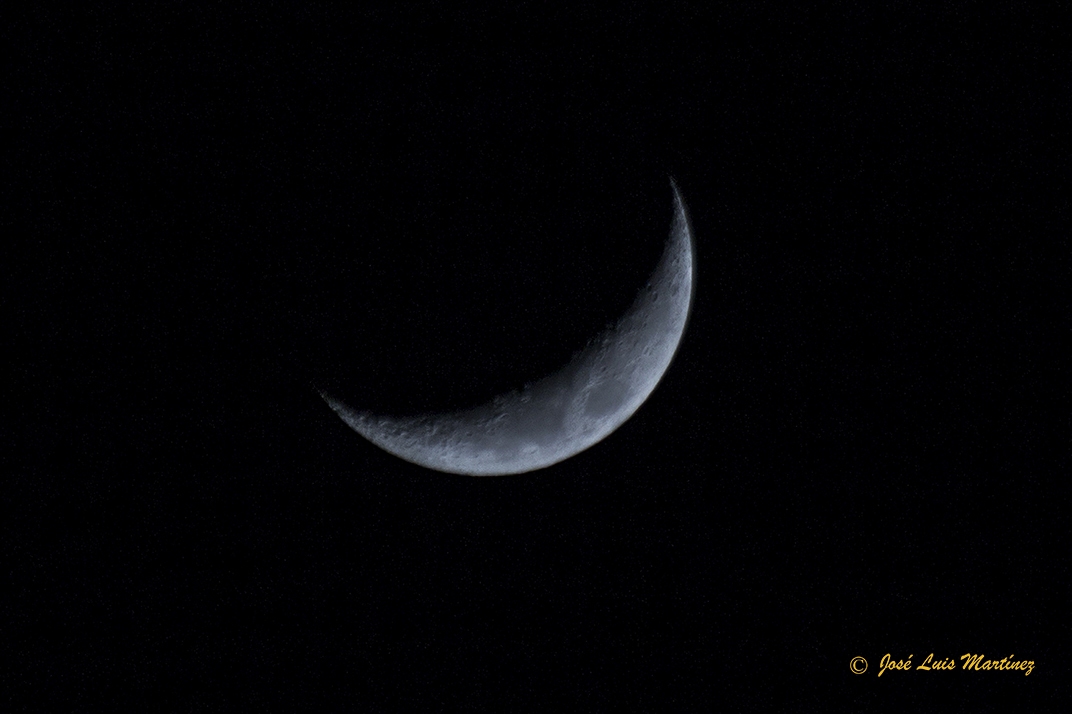 Con el 70-300 hice una más, la imagen siguiente, la Luna creciente en su cuarto día del ciclo.