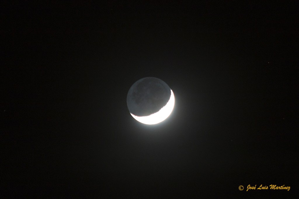 En la fotografía anterior puede verse esta luz cenicienta de la Luna. Pero ésta se ve mucho mejor en la imagen siguiente, realizada en este caso con el 70-300.