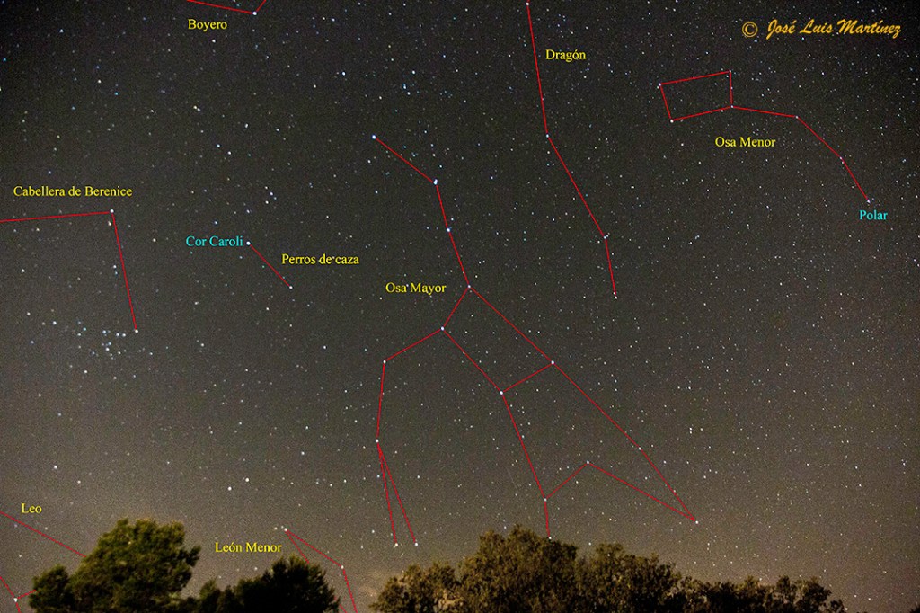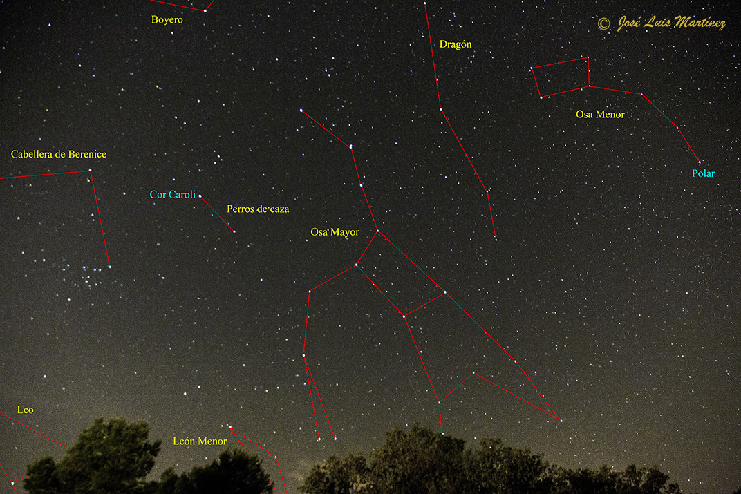 A pesar de que todavía era primavera, el hecho de que ésta ya estuviera casi a finales y de que estas fotos las hice con la noche ya avanzada (entre la una y las dos de la madrugada, 23:00-24:00 UT), hizo que las constelaciones que había en ese momento y las que, por tanto, salen en este artículo, fueran constelaciones de verano y no de primavera.