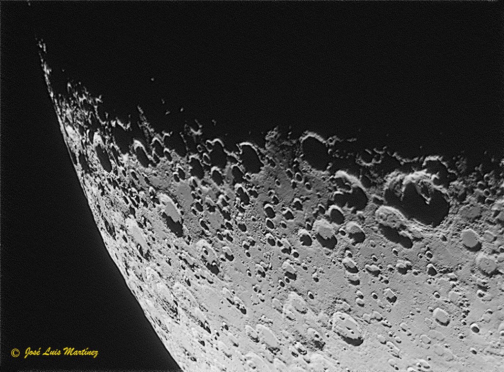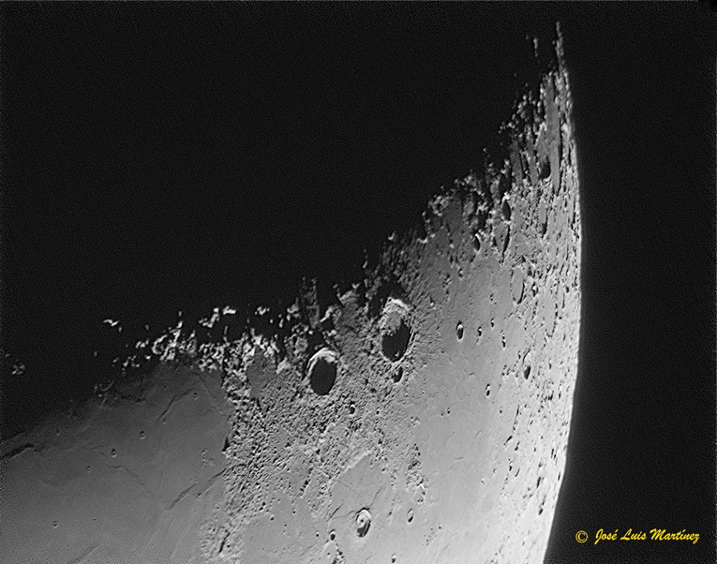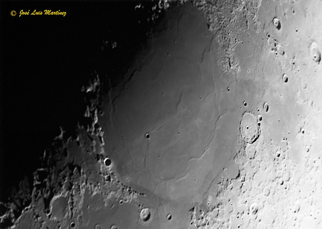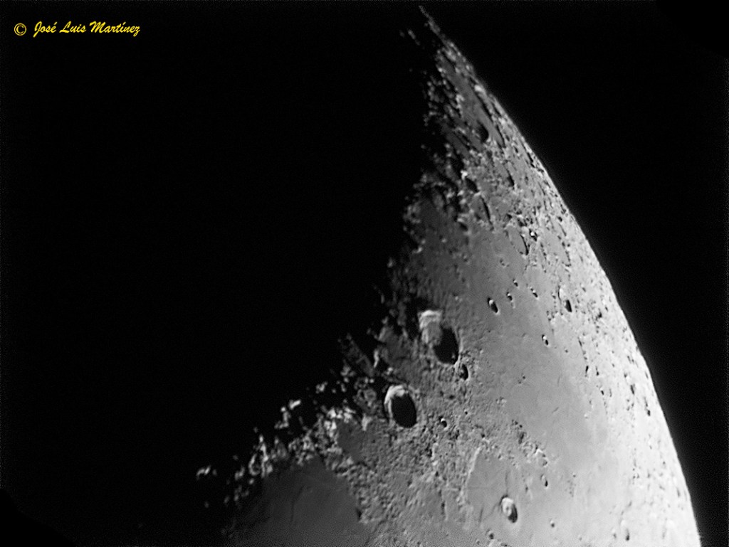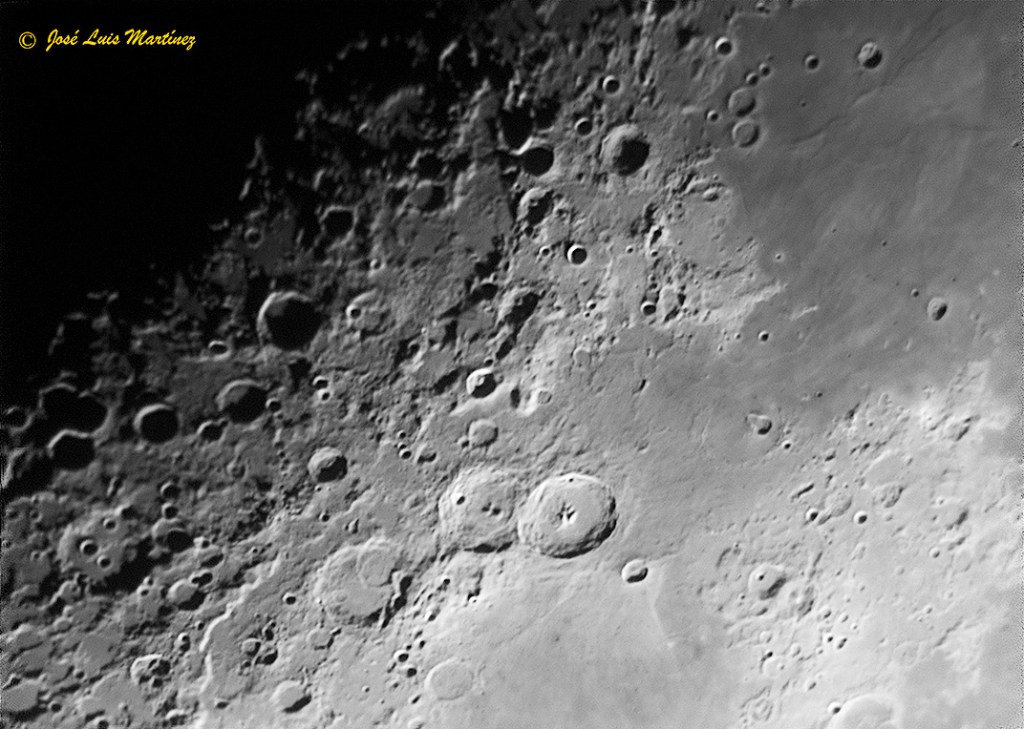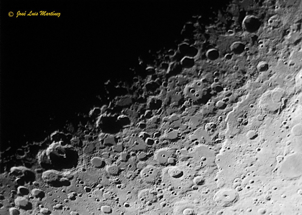 Se pueden distinguir perfectamente los cráteres más importantes, Aristoteles y Eudoxus en el norte, el trío Theophilus, Cyrillus y Catharina en el centro y Maurolycus y Cuvier en el sur y, evidentemente, los mare (Crisium, Fecunditatis, Nectaris, Serenitatis y Fecunditatis), tal como he indicado en la imagen de la derecha.