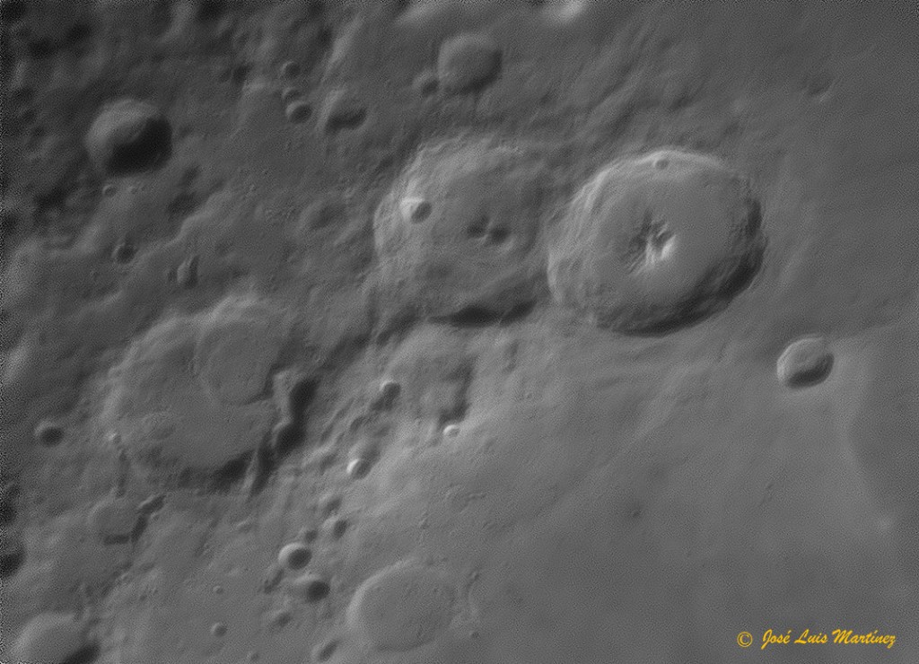 Además de los cráteres mencionados, podemos observar otros más, de los cuales he indicado algunos en la siguiente imagen: