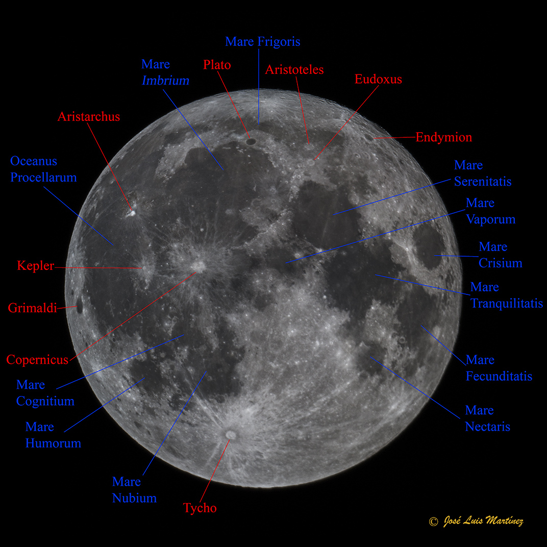 De todas maneras, algunos cráteres, y todos los mare de la Luna de la cara visible, sí son observables en fase de Luna llena.