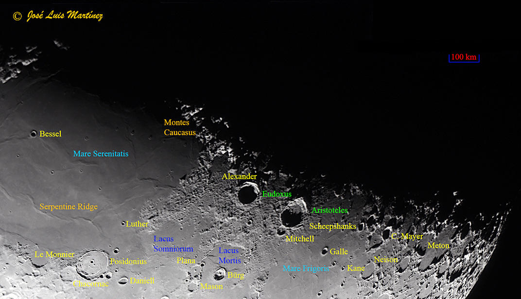 Para acabar comentar que Aristoteles es un cráter circular, pero por su situación y por nuestra perspectiva terrestre, hace que lo veamos más ovalado que circular.