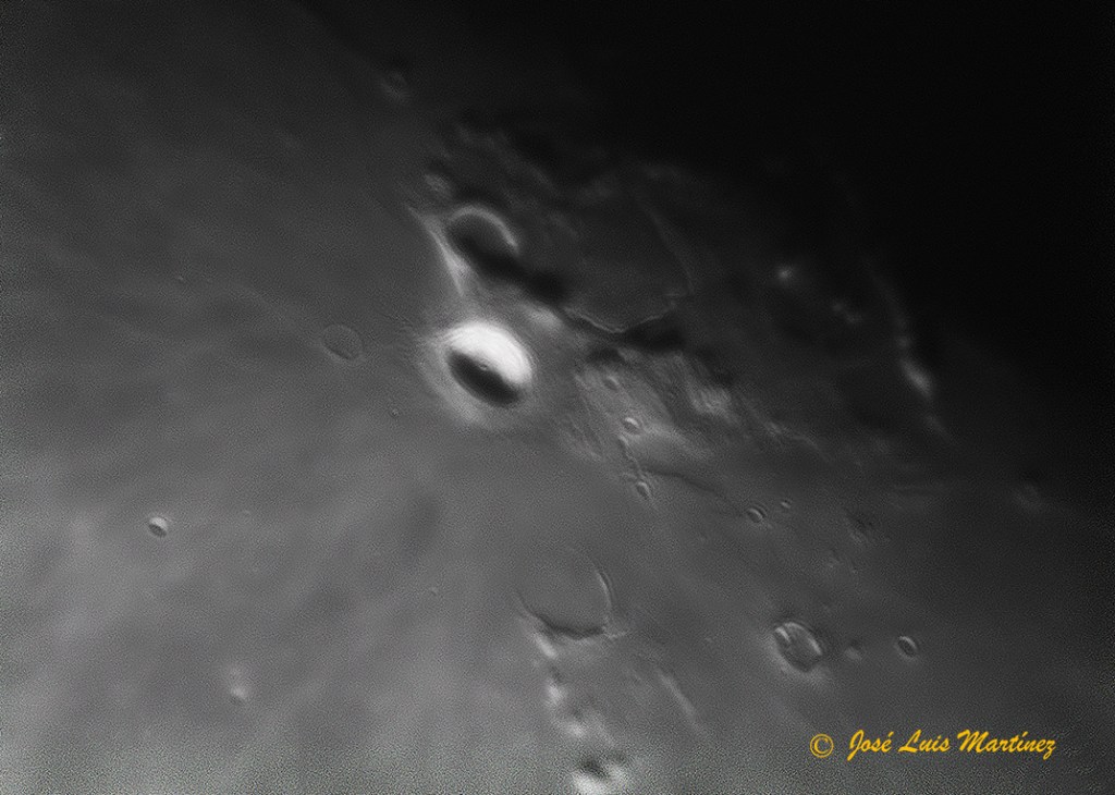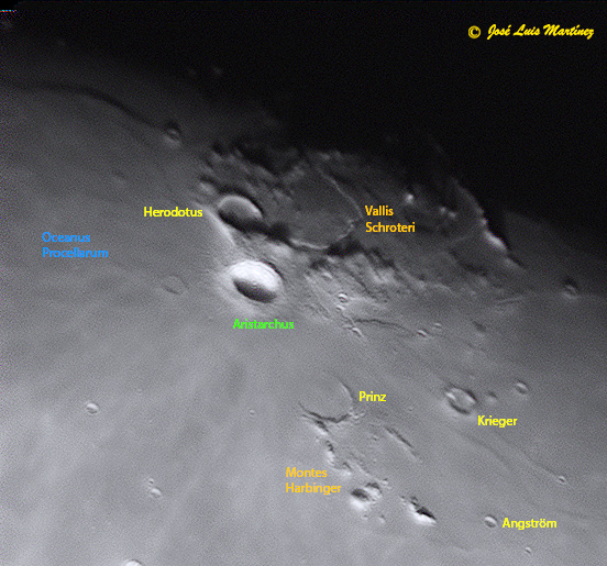 En la imagen de la izquierda utilicé también una lente barlow. En ella podemos ver el cráter Aristarchus y, por encima (al oeste), y casi pegado a él, está el cráter Herodotus.