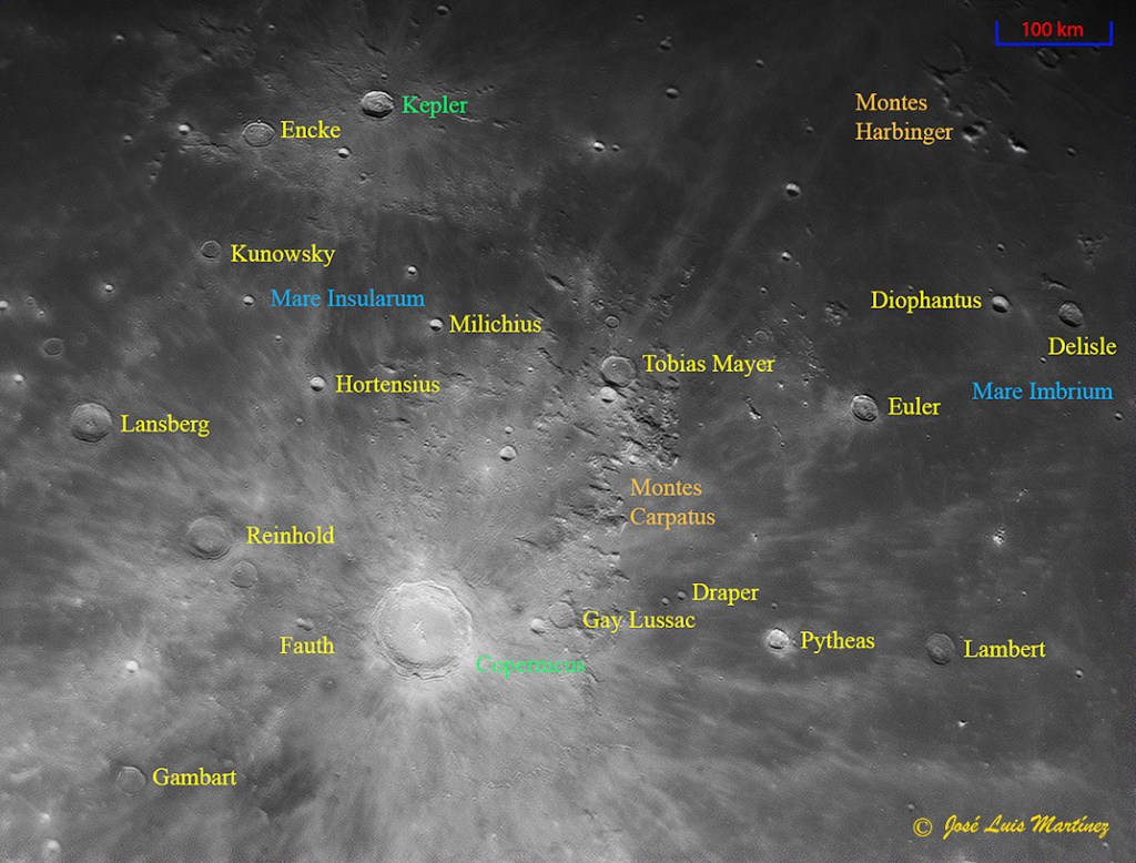 Para acabar, al este de Kepler se encuentra el gran Copernicus, como puede verse en la imagen siguiente.
