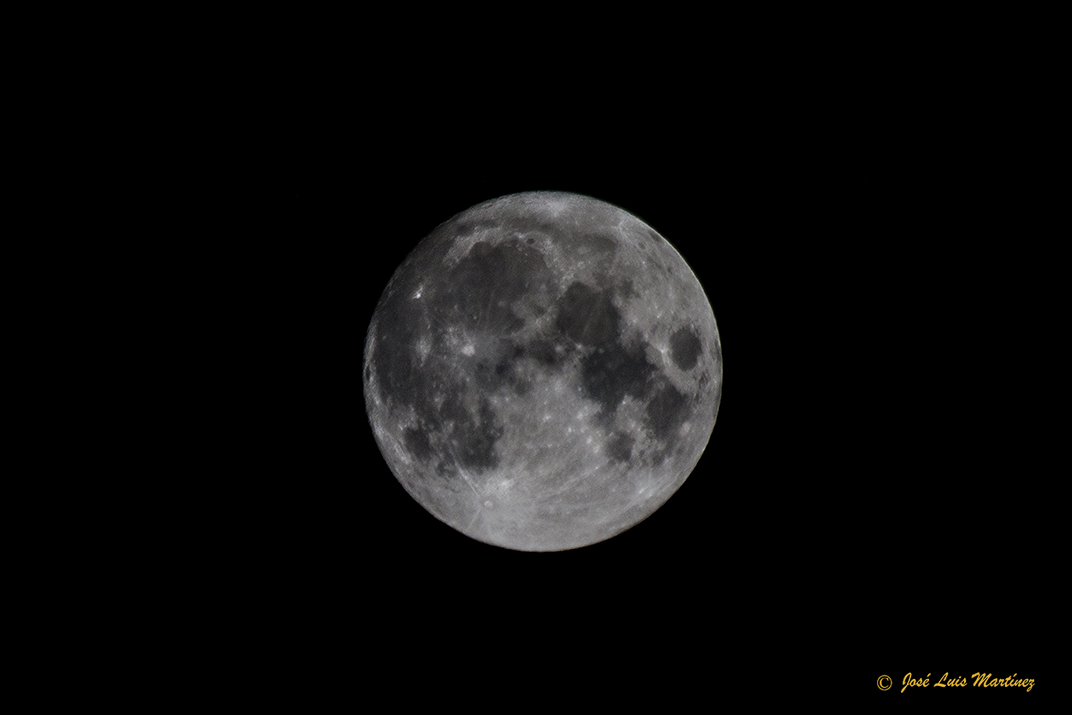 Pero ya que que había Luna, el viernes 13 y el domingo 15 aproveché además para observar y fotografiar nuestro satélite. A la semana siguiente, con una Luna prácticamente llena, simplemente le hice unas fotos sin telescopio, con cámara y objetivo.