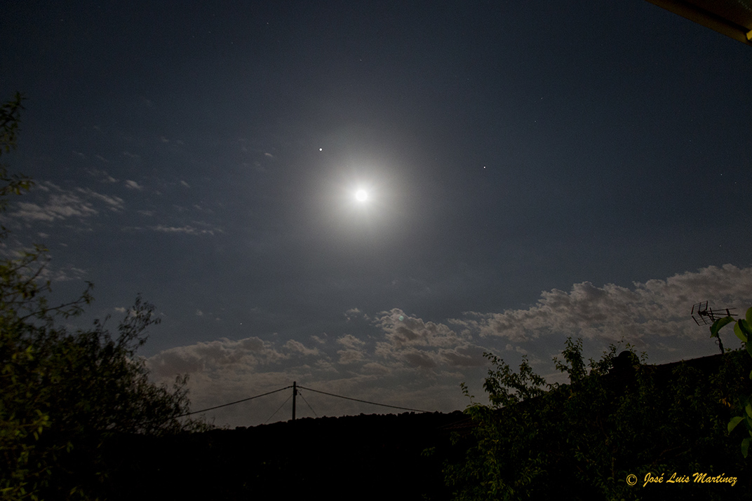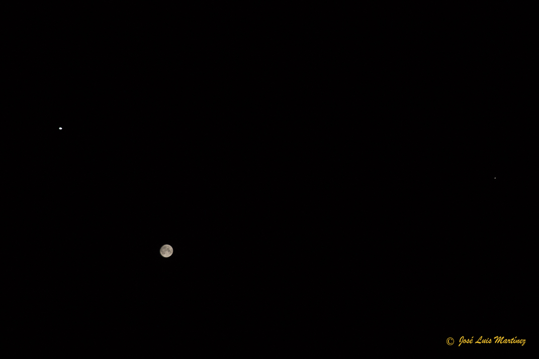Además, ese día, la Luna y los dos planetas gigantes gaseosos, Júpiter y Saturno, formaban una bonita conjunción. Así que, con el objetivo 15-85 hice las dos fotografías siguientes.