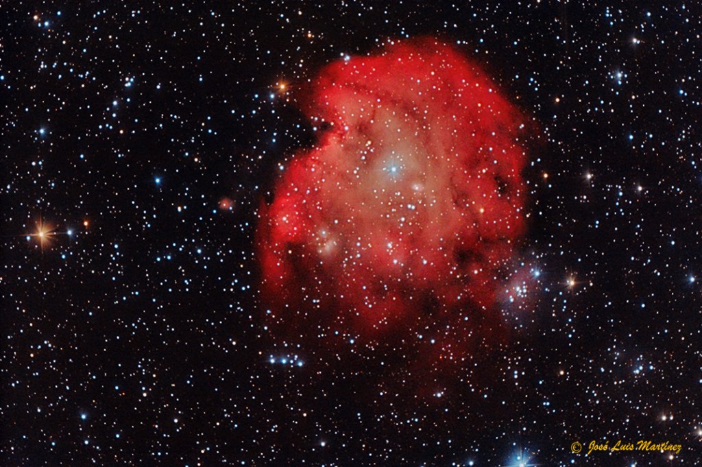 La imagen siguiente, realizada desde Querol el día 1 de enero de 2022 con un telescopio reflector Skywatcher 200/1000 y una cámara Canon EOS 550D, es de esta nebulosa. Con un poco de imaginación se puede intuir el apodo de cabeza de mono que se le ha puesto.
