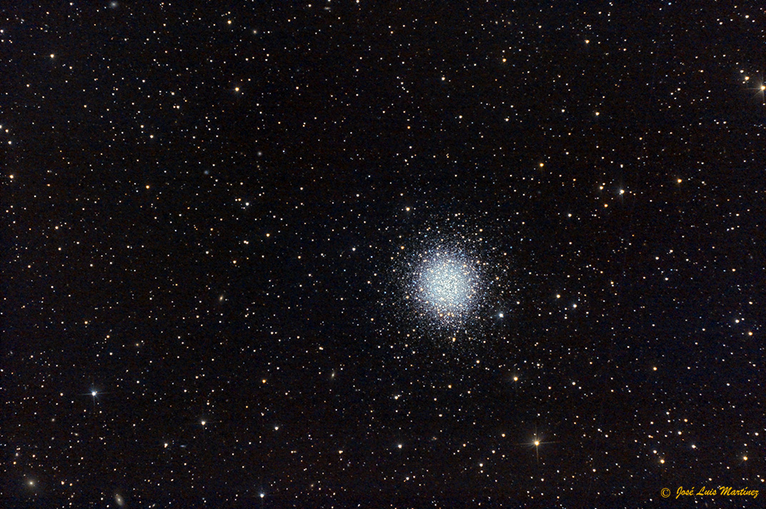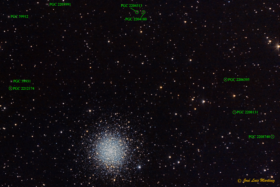 La imagen siguiente, realizada desde Querol el día 24 de junio de 2022, con un telescopio reflector Skywatcher 200/1000 y una cámara Canon EOS 550D, es de este otro gran cúmulo globular en Hércules.
