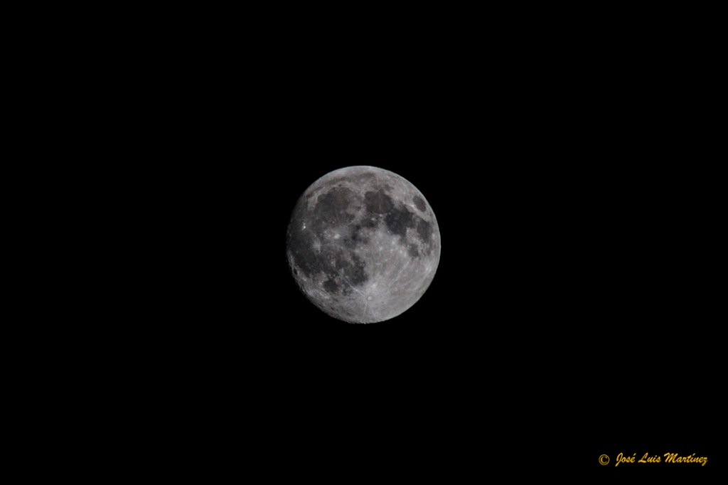 Más tarde, le acoplé al telescopio el cuerpo de la Canon EOS 70D y le hice una única toma a nuestro satélite, el resultado de la cual es la siguiente fotografía.