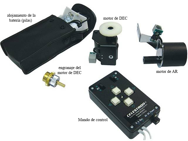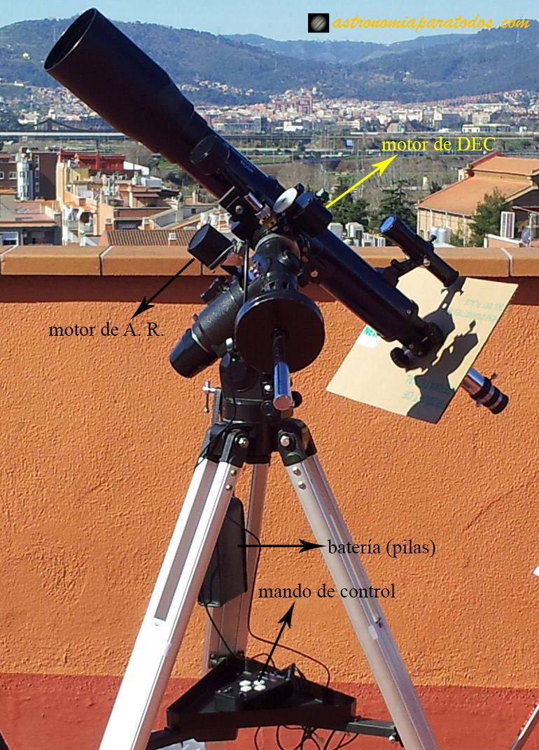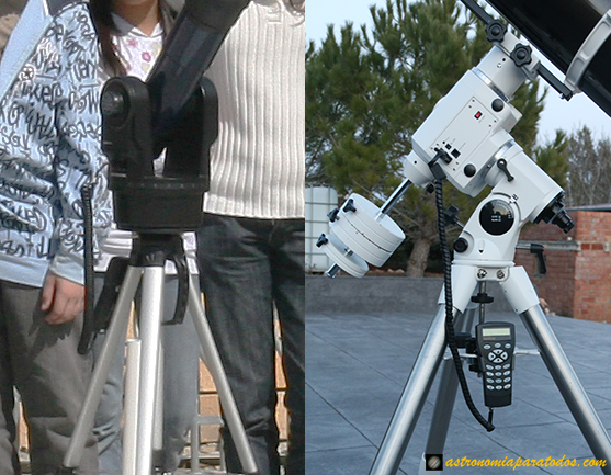 Normalmente suelen ser monturas ecuatoriales y, mediante un mando de control, podremos mover de manera fina y automática, tanto el eje de declinación como el de ascensión recta.