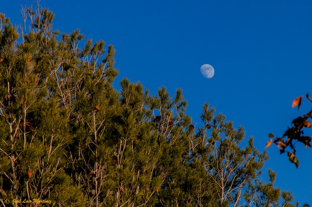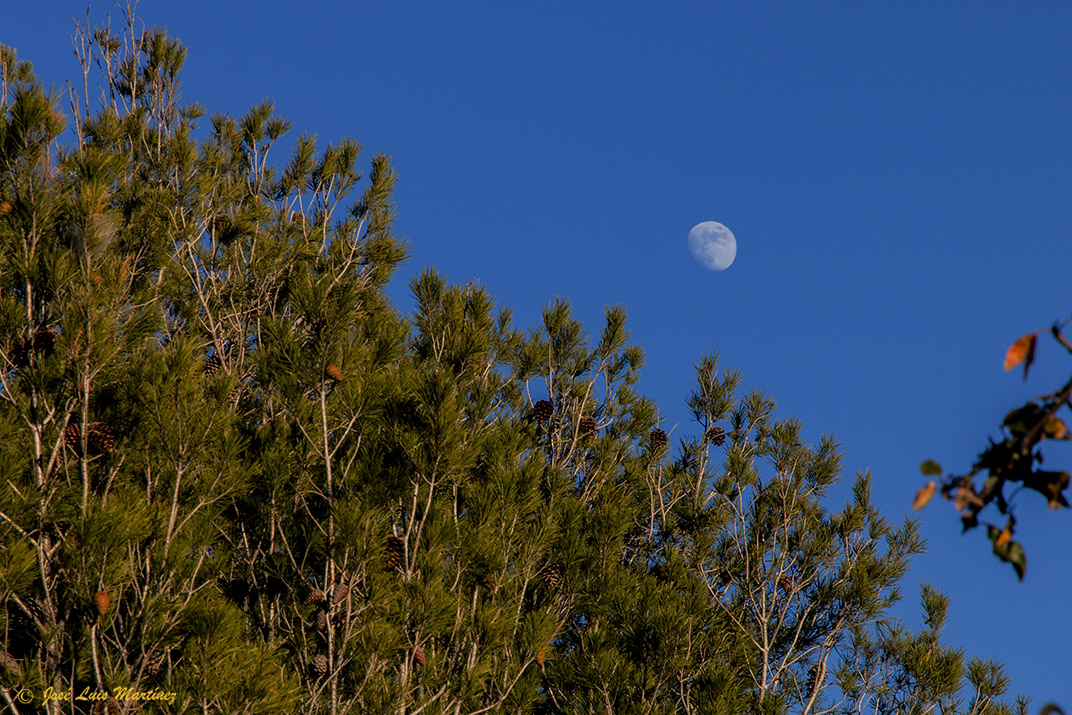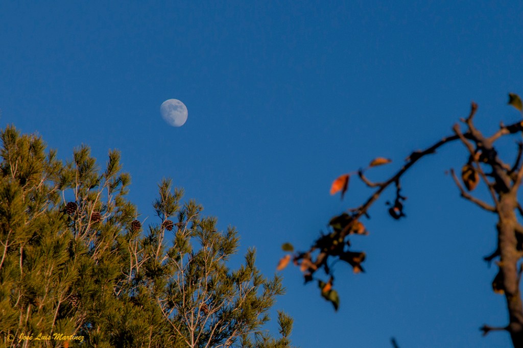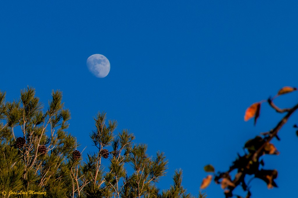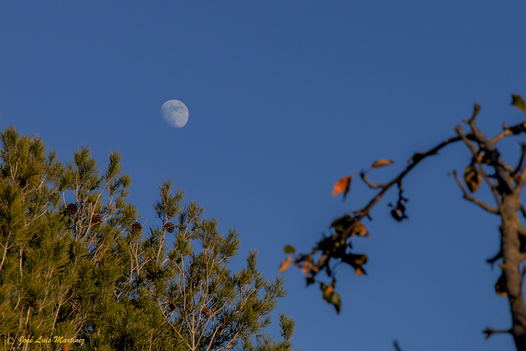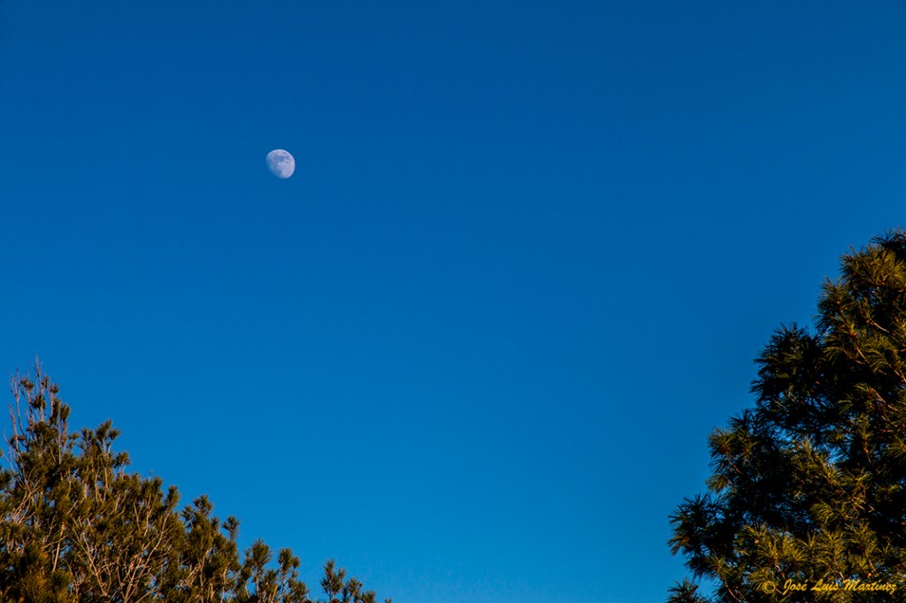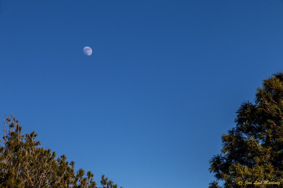 Por la noche la estuve observando con telescopio y también le hice una foto a través del mismo; pero antes y de día (Luna de día), le hice estas otras fotos a nuestro satélite con cámara (Canon EOS 70D), y objetivo (Canon 15-85 a 85 mm).