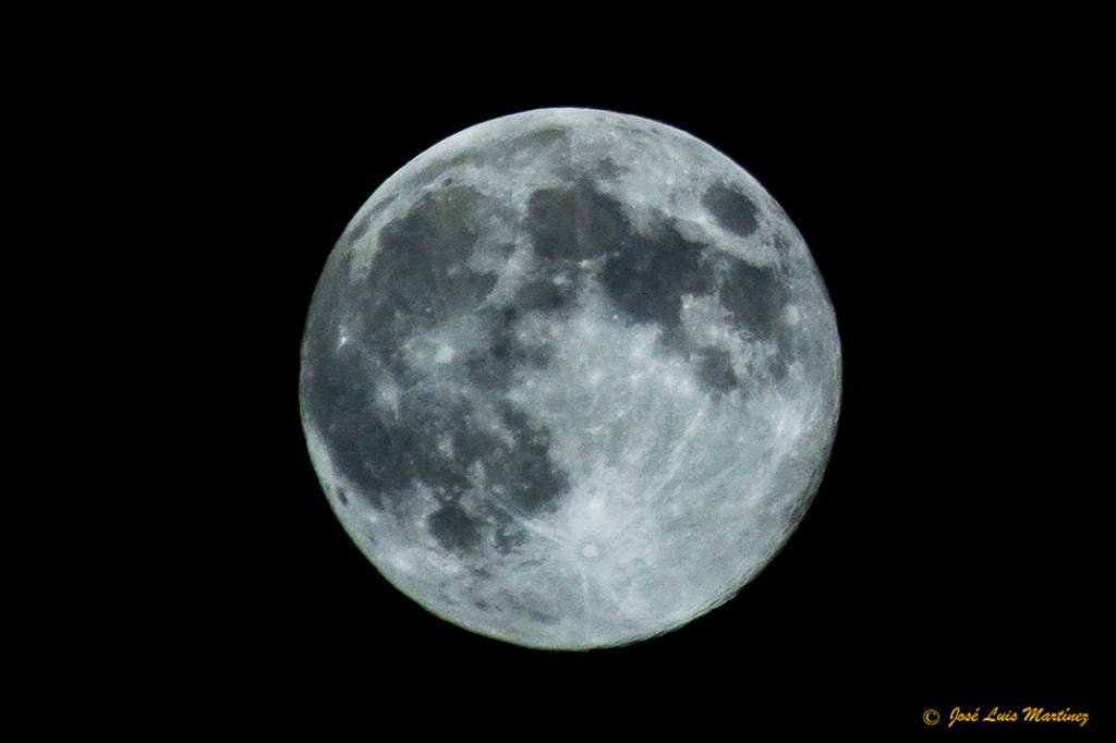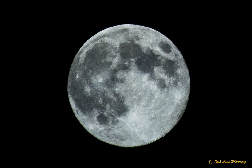Me subí al terrado con la Canon EOS 70D, el objetivo Canon 70-300 y el trípode y le hice la siguiente fotografía (a 300 mm) a nuestro satélite.