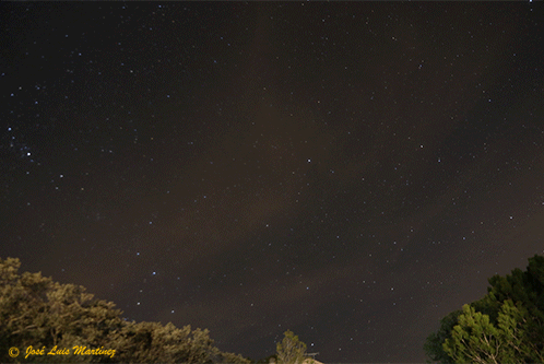 Y esta otra imagen es la última toma, la 76ª, es decir, 44 minutos después. Entre ambas se puede apreciar un cambio de posición de las estrellas y constelaciones.