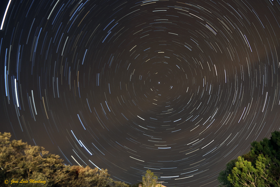 Son un total de 76 tomas de 30 segundos a intervalos de 5 segundos, lo que hace un total de 44 minutos, montado con el programa Startrails. Es decir, la imagen son las trazas dejadas por las estrellas alrededor del polo norte celeste durante 44 minutos, debido al movimiento de rotación de la Tierra alrededor de su eje (ver los movimientos aparentes de los objetos del cielo).