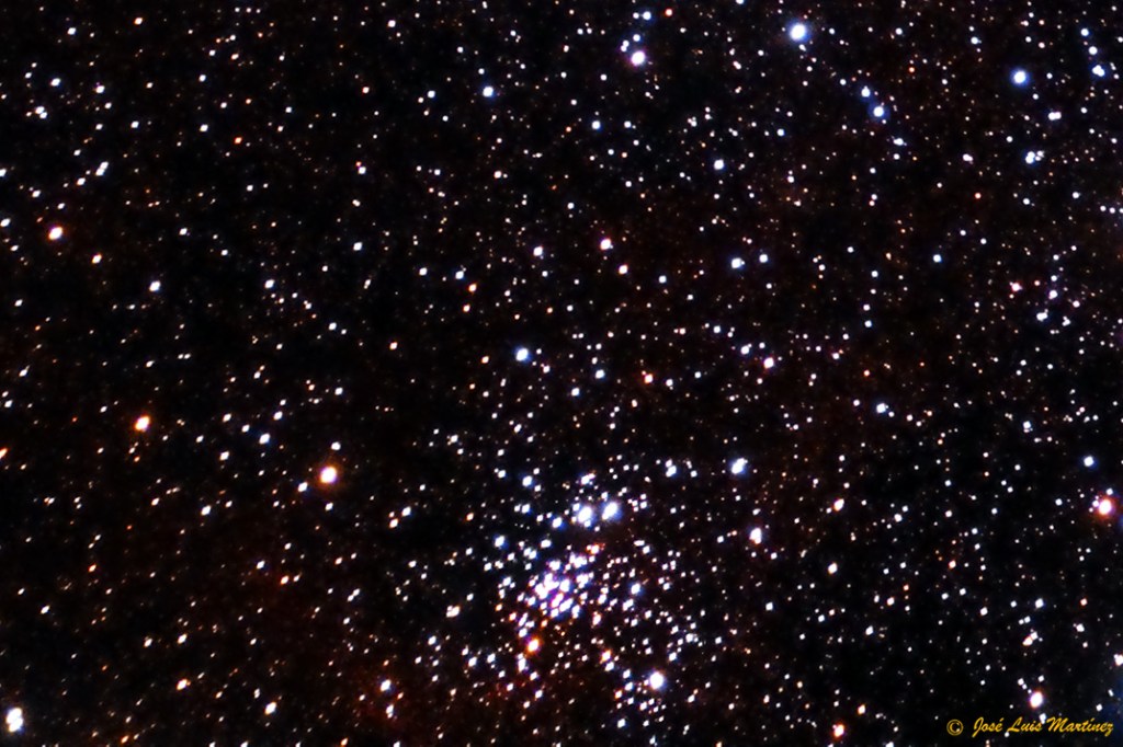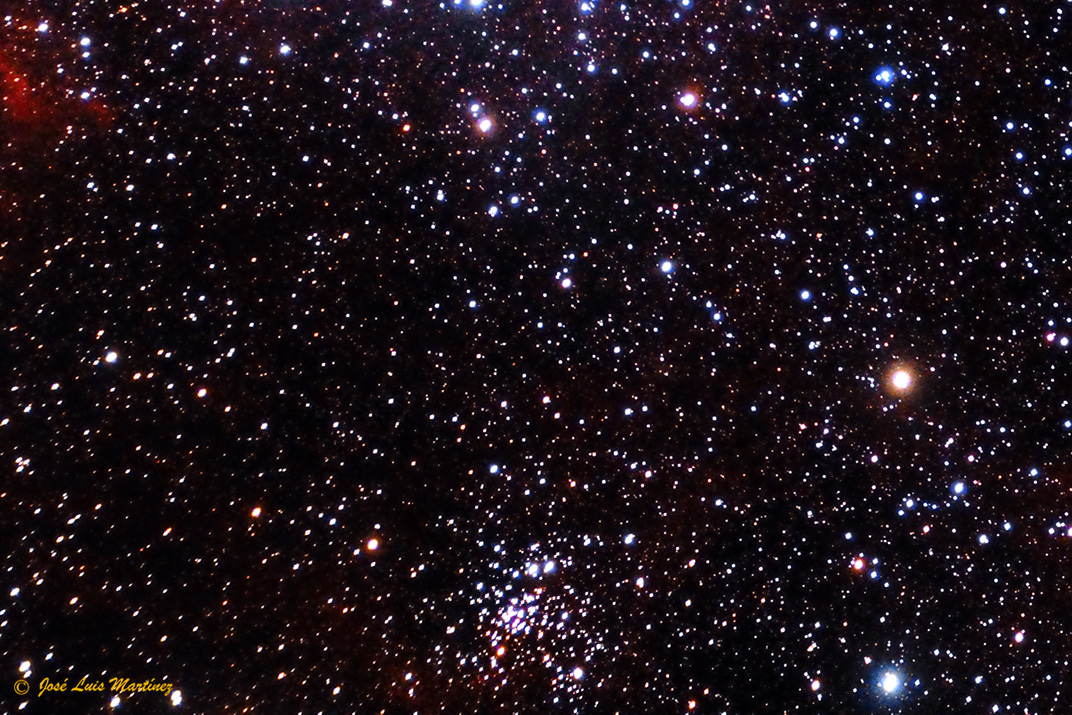 La siguiente imagen, realizada desde Querol el día 3 de febrero de 2024, con un telescopio refractor Long Perng ED80/500 y una cámara ZWO ASI 2600 MC Pro, es un recorte considerable de una fotografía que realicé de la zona, y es de este cúmulo estelar, el cual se encuentra en la zona inferior de la imagen.
