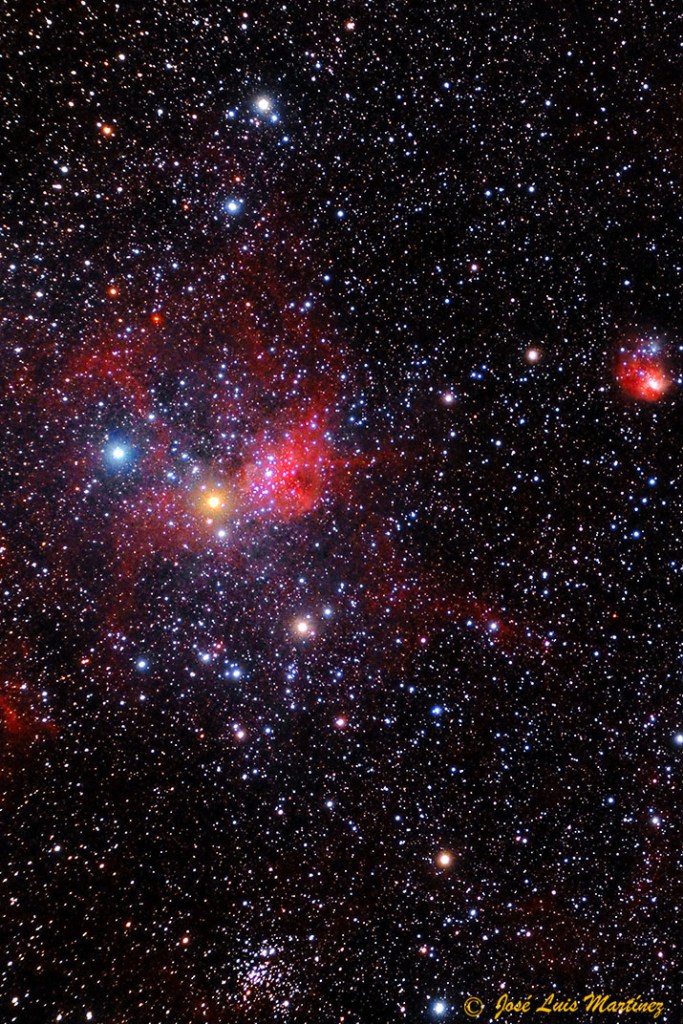 Es el caso de la imagen anterior sin recortar, en la cual, además de NGC 1907 hay dos nebulosas, IC 417 (la nebulosa de la Araña) y NGC 1931 (la nebulosa de la Mosca) y un cúmulo abierto, M36 (cúmulo del Molinillo). Dicha imagen sin recortar puede verse en la entrada La Araña, la Mosca y algo más.