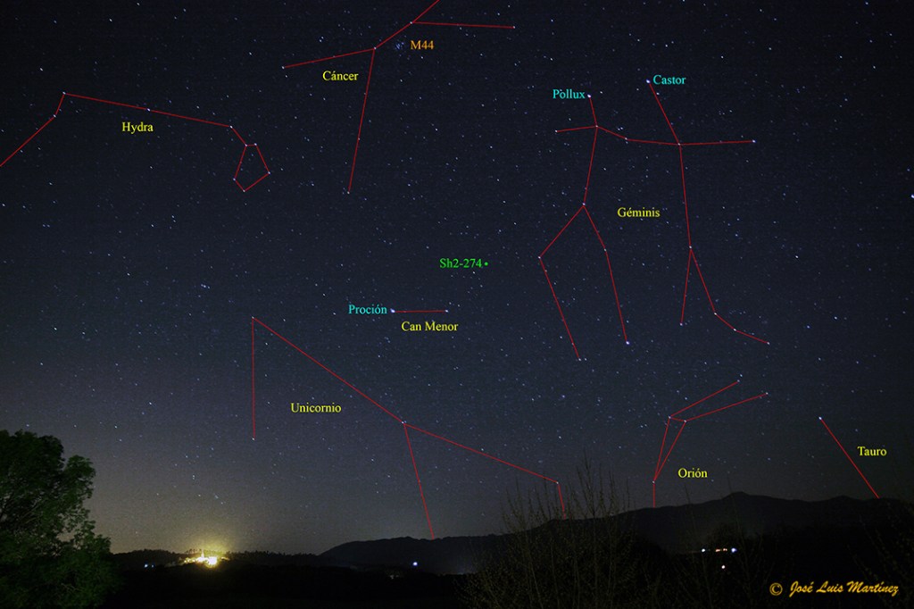 Situada en el cielo en la constelación invernal de Géminis (en el hemisferio norte, en el sur sería estival) y a unos 1500 años luz de distancia de nosotros, se encuentra una preciosa y gran, aunque débil nebulosa planetaria, la cual está catalogada como Sh2-274, e incluida también en el catálogo de Abell como Abell 21, y es conocida como la nebulosa Medusa.