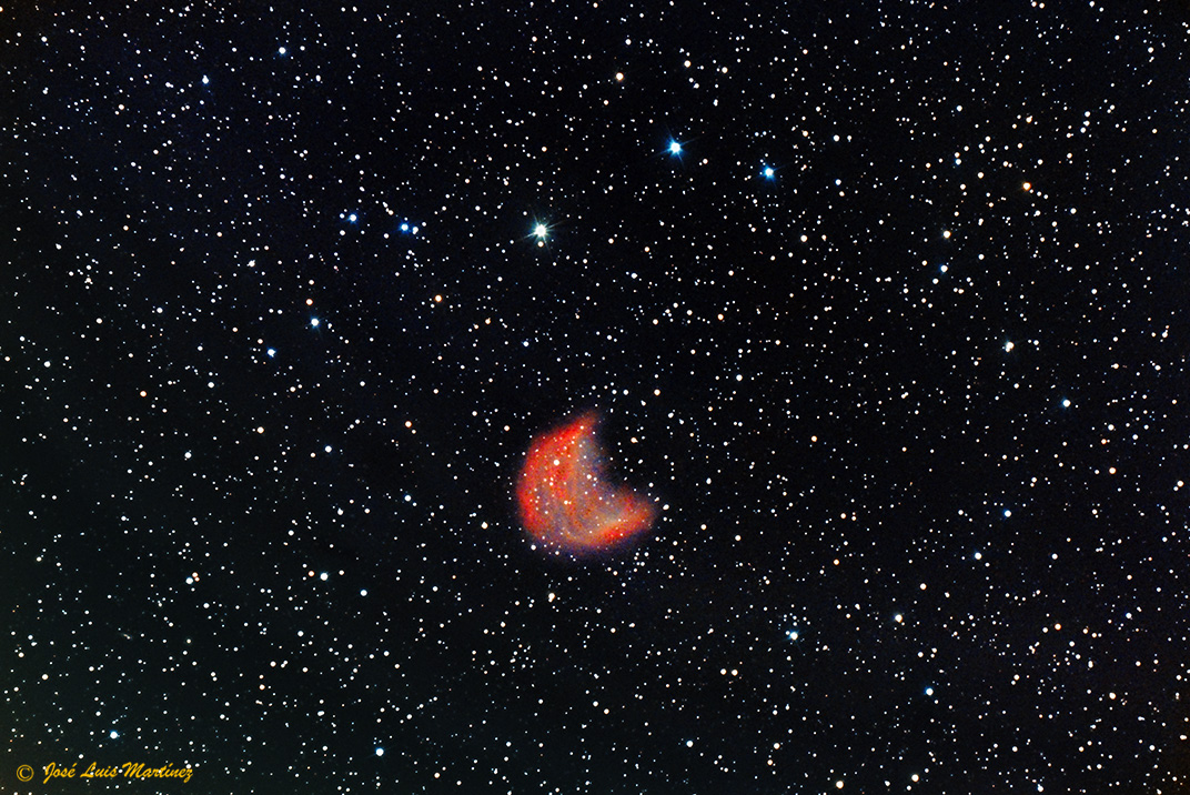 Sh2-274 no es una nebulosa de emisión de una región HII, sino que es, como he comentado, una nebulosa planetaria, es decir, una fase tardía de una estrella pequeña-mediana (como el Sol) que, tras la fase de gigante roja, las capas externas de ésta son expulsadas al espacio formando estas nebulosas (ver La vida de las estrellas).
