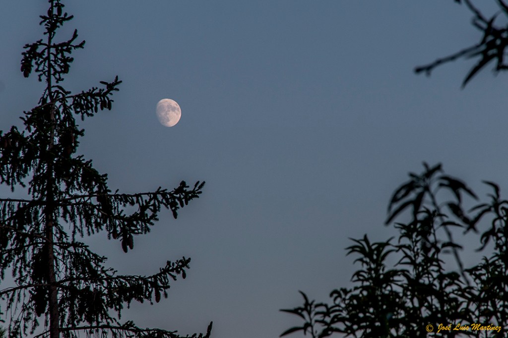 Así que, por la tarde, un poco antes del anochecer, le hice estas dos fotos a la Luna de día.